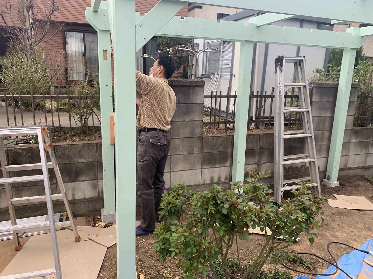 私は今まで、住宅のハウスメーカーの監督業に勤めてきましたが、野崎工務店に入社し、初めての仕事がパーゴラ設置工事という私自身初めての工事で図面から自身で作成し、不慣れ事が多くありましたが、出来上がっていくとともに気持ちがワクワクし、自身でも満足するパーゴラが完成でき、嬉しく思っております。