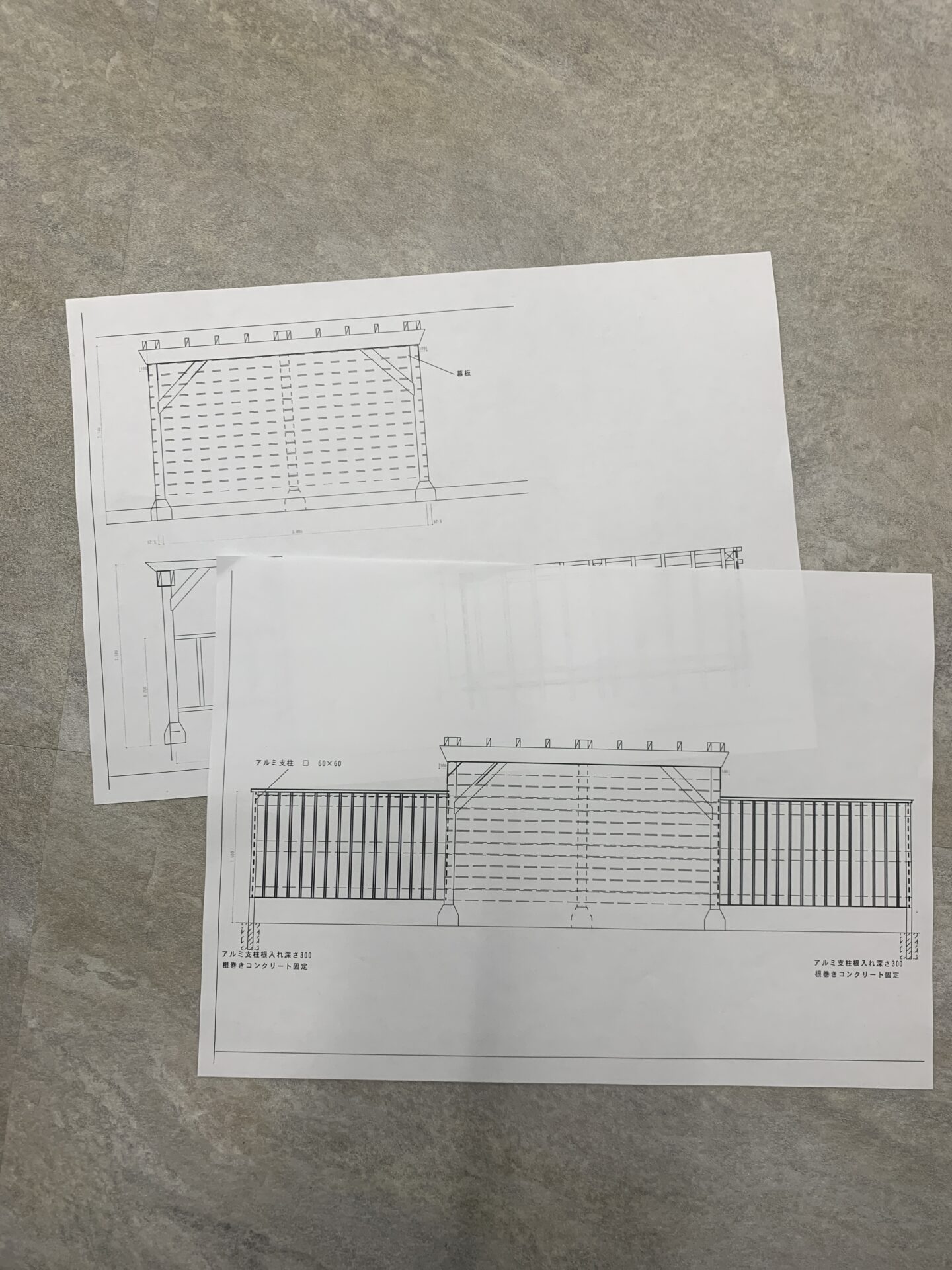 最初に現地調査、お客様との打ち合わせを行い、形状などの要望を伺い、図面を作成させて頂きました。