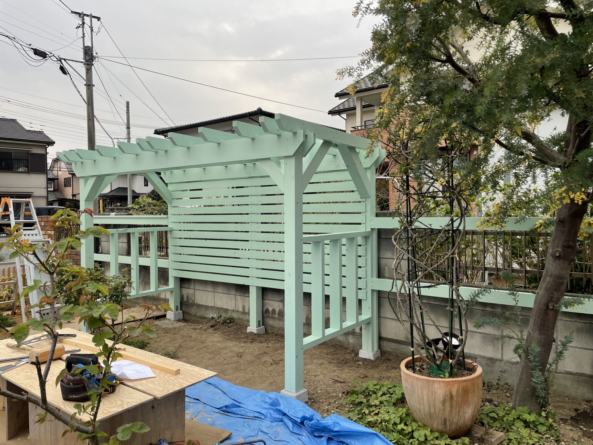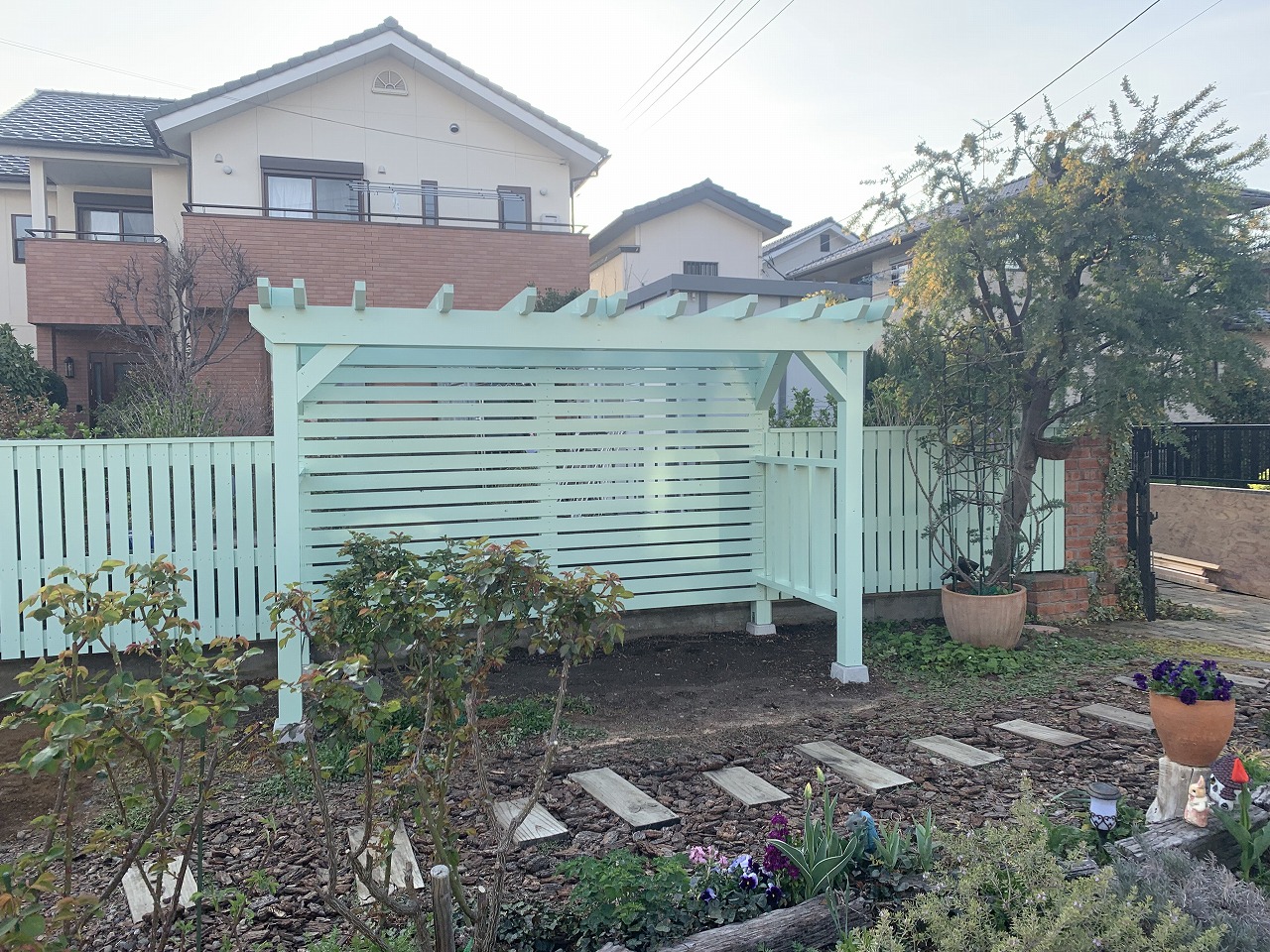 パーゴラが完成し、お客様も大変満足しており、さらにガーデニングが楽しみと言っていただきました。