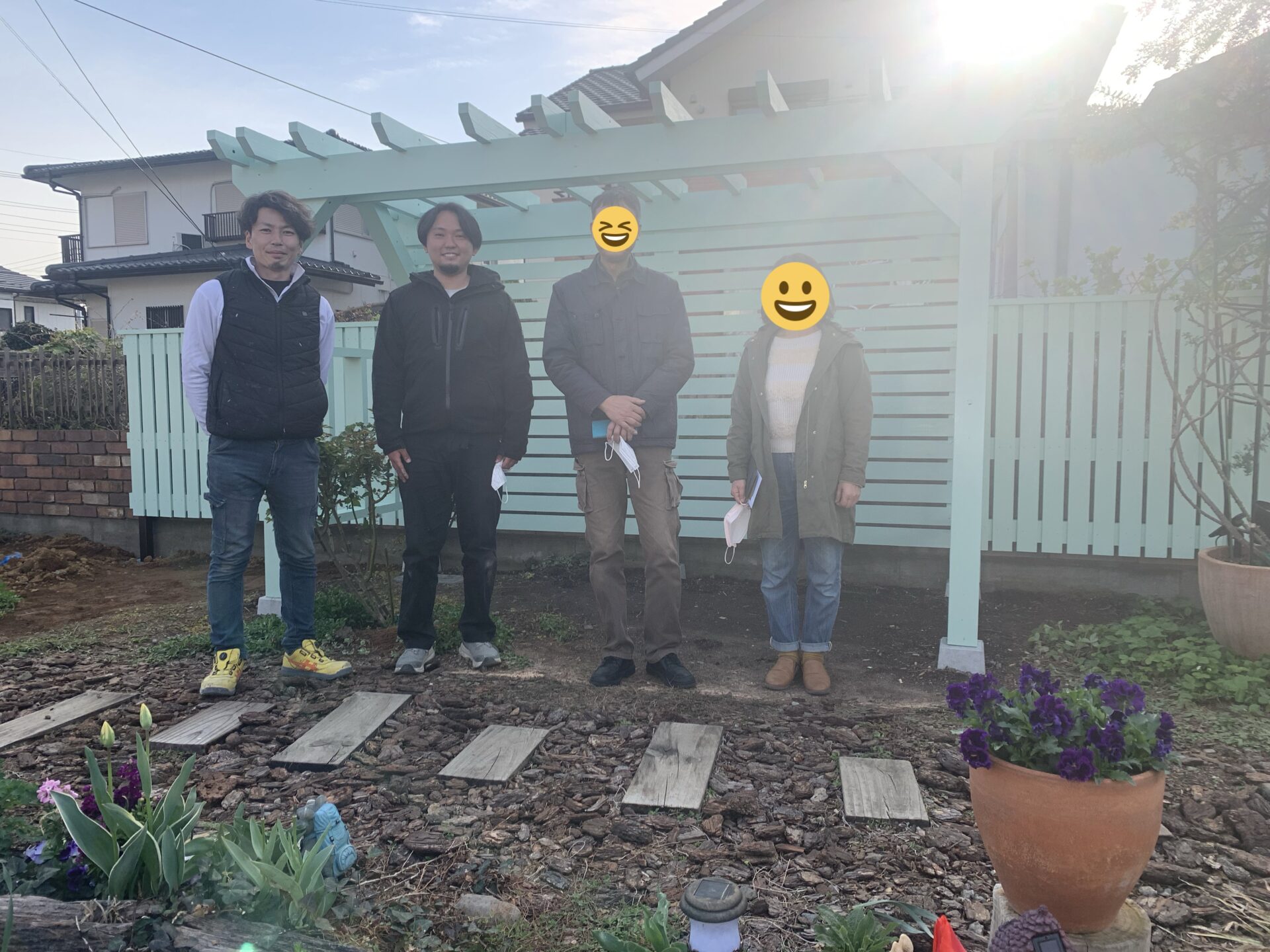写真の右から二人はお客さんご夫婦、その隣が私窪田でその左は塗装屋さんの濱田さんです。✌