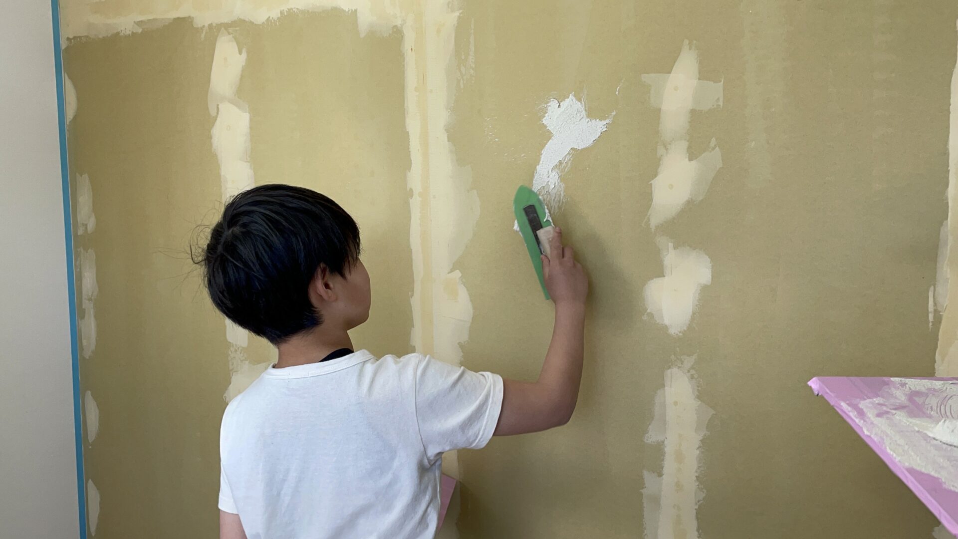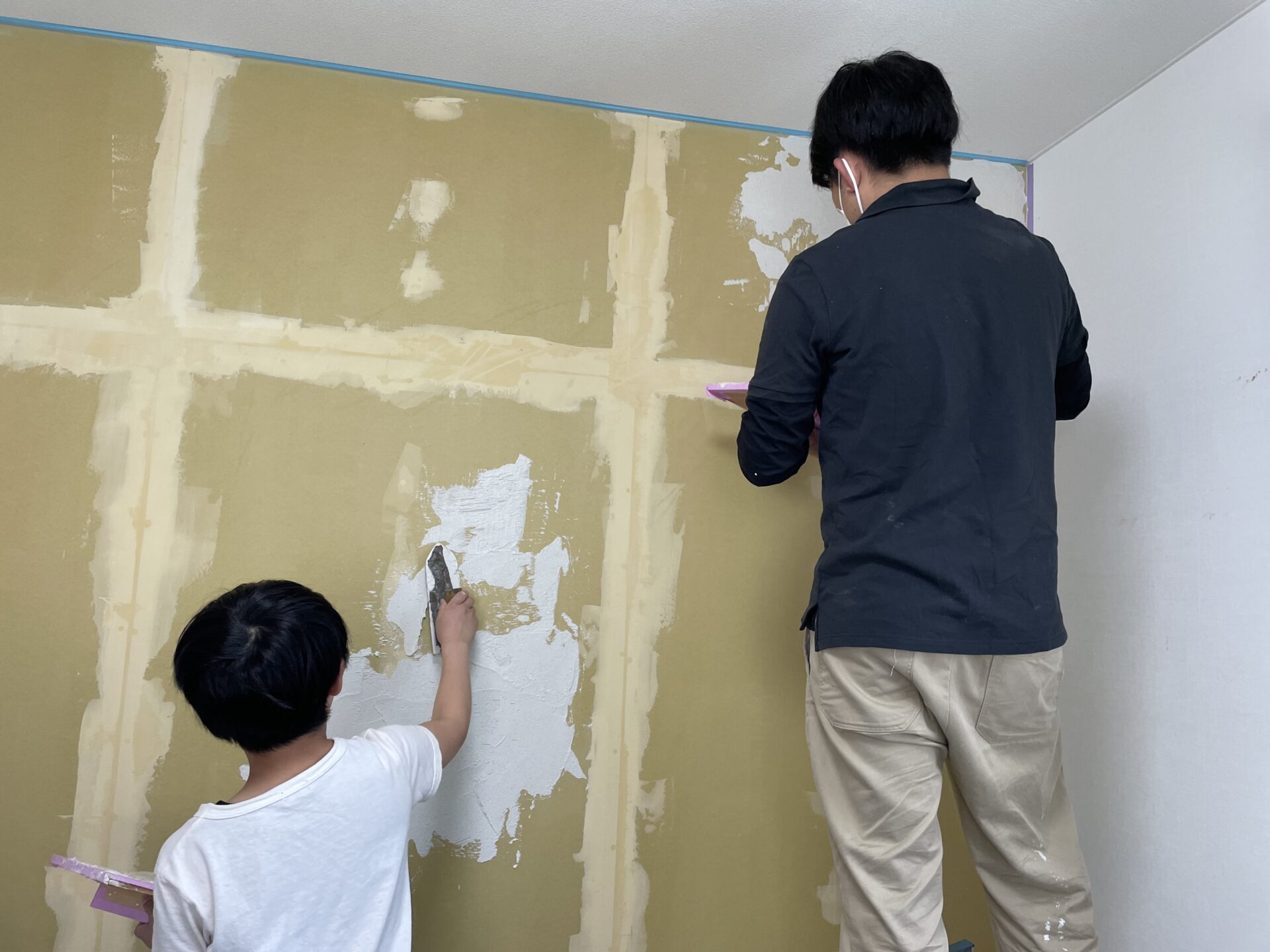 代表に間仕切り工事の相談をしたところ、自分達で漆喰を塗ることも出来るよとワクワクする提案が✨家族で相談したところ、子供達は「そんなこと自分達で出来るの…?」と不安もありつつ、「やってみたい‼」と初めての体験を楽しみにしていました。