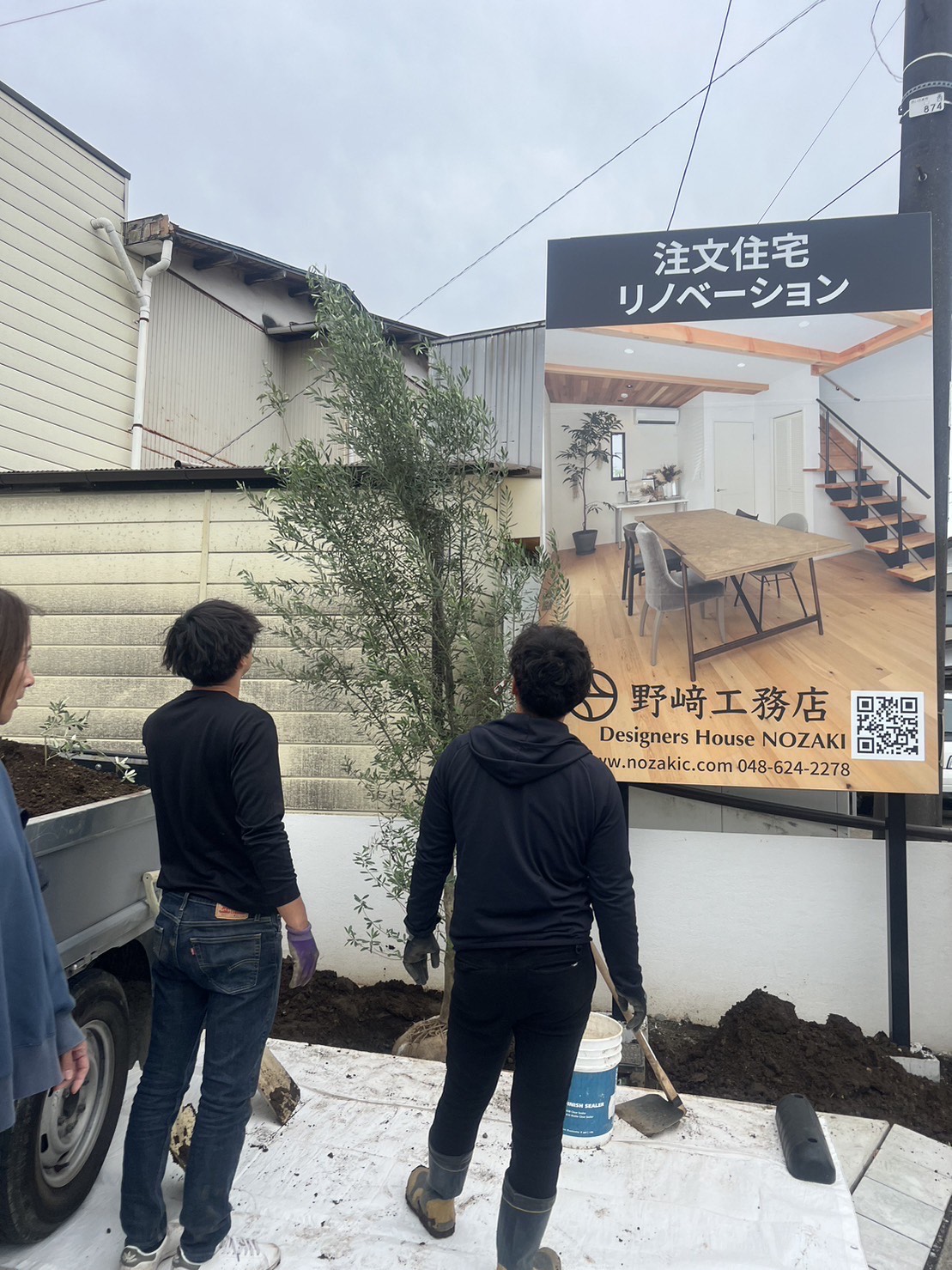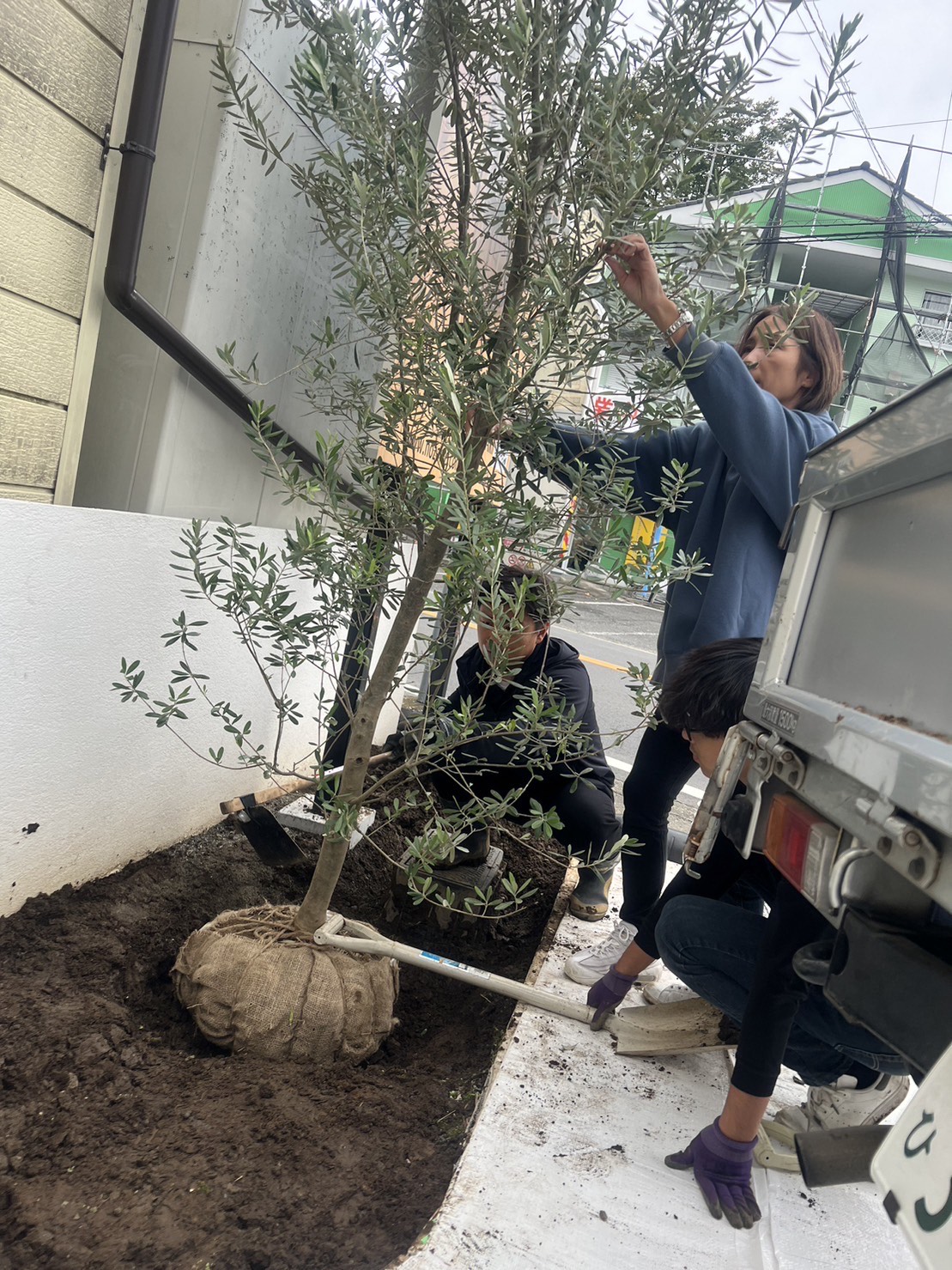 看板横には、シンボルツリーとして3m超えのオリーブの木を!