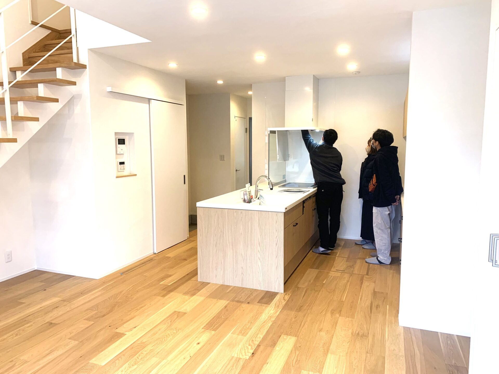 オークの床材、塗り壁、リビングイン階段、吹き抜け、こだわりの洗面等、一緒にご案内している僕までワクワクするような素敵な仕上がりになりました!