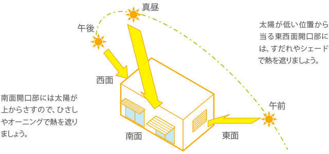 エアコンなど機械に頼らず太陽の光や熱、風の力を利用して省エネルギーな生活を目指す為の設計手法。