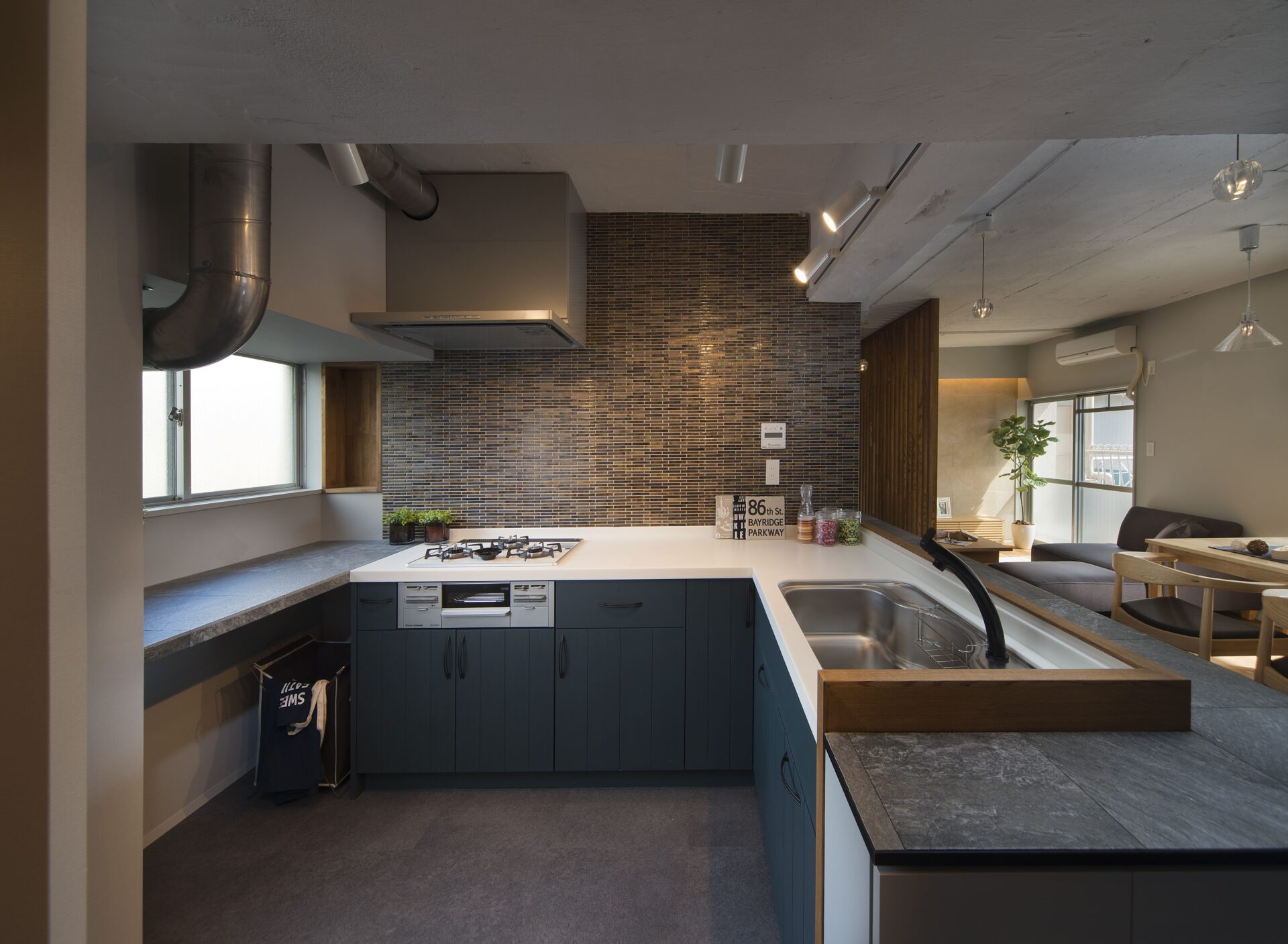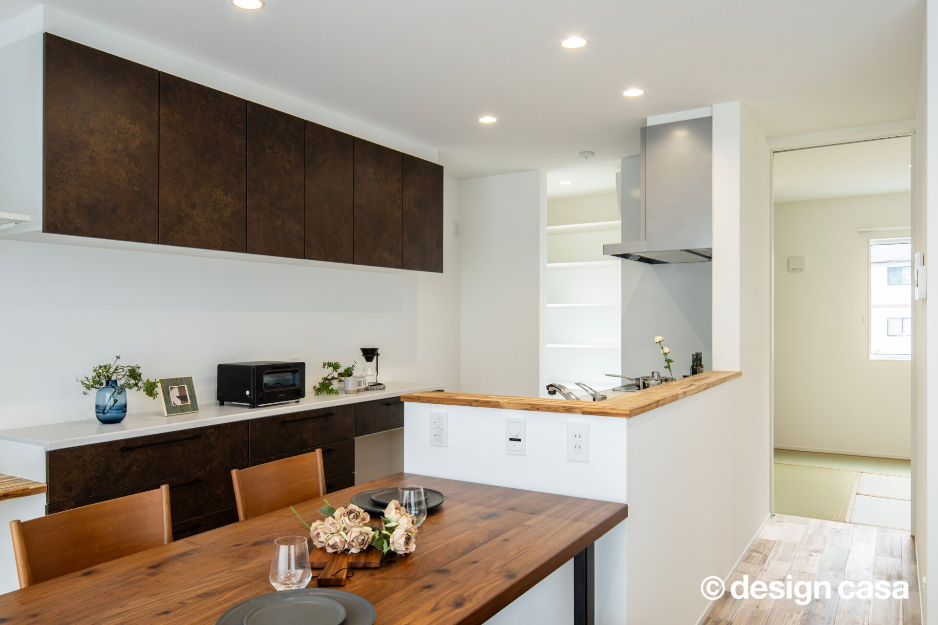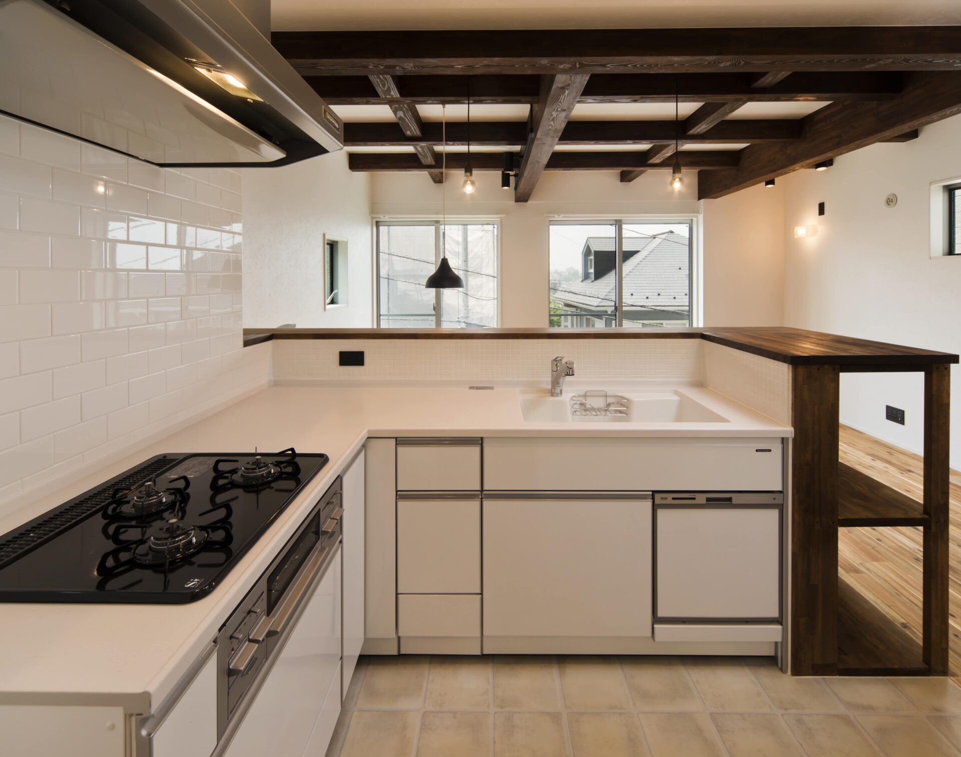 アイランドキッチンのような開放感を持ちながらも、スペースを有効活用できるため、注文住宅で特に人気の高いデザインです。