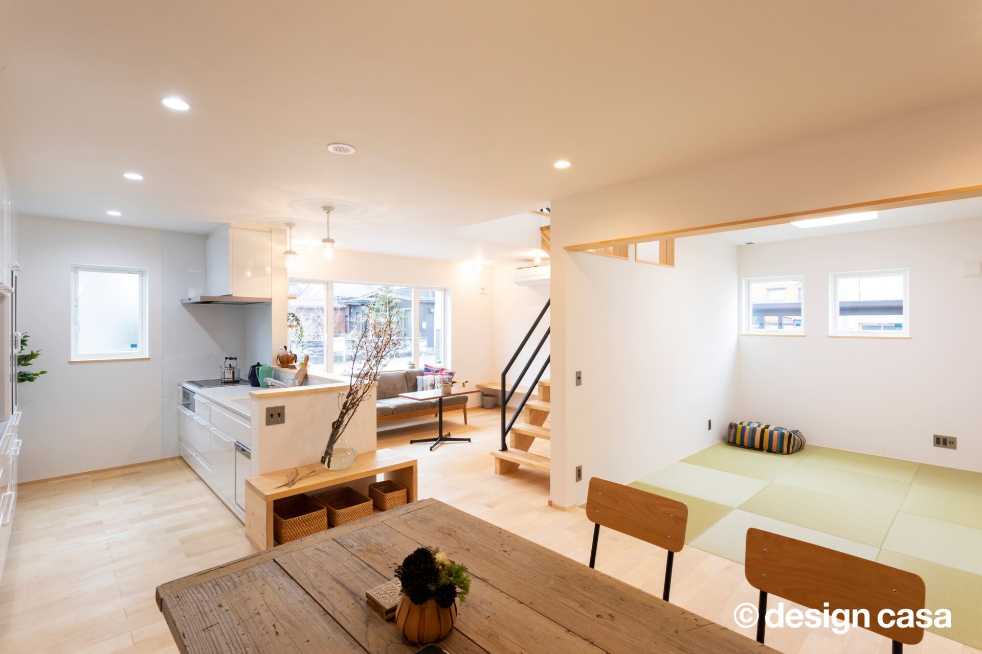 リビングの一角に畳スペースを設けることで、子どもの遊び場やちょっとした休憩スペースとして活用できます。