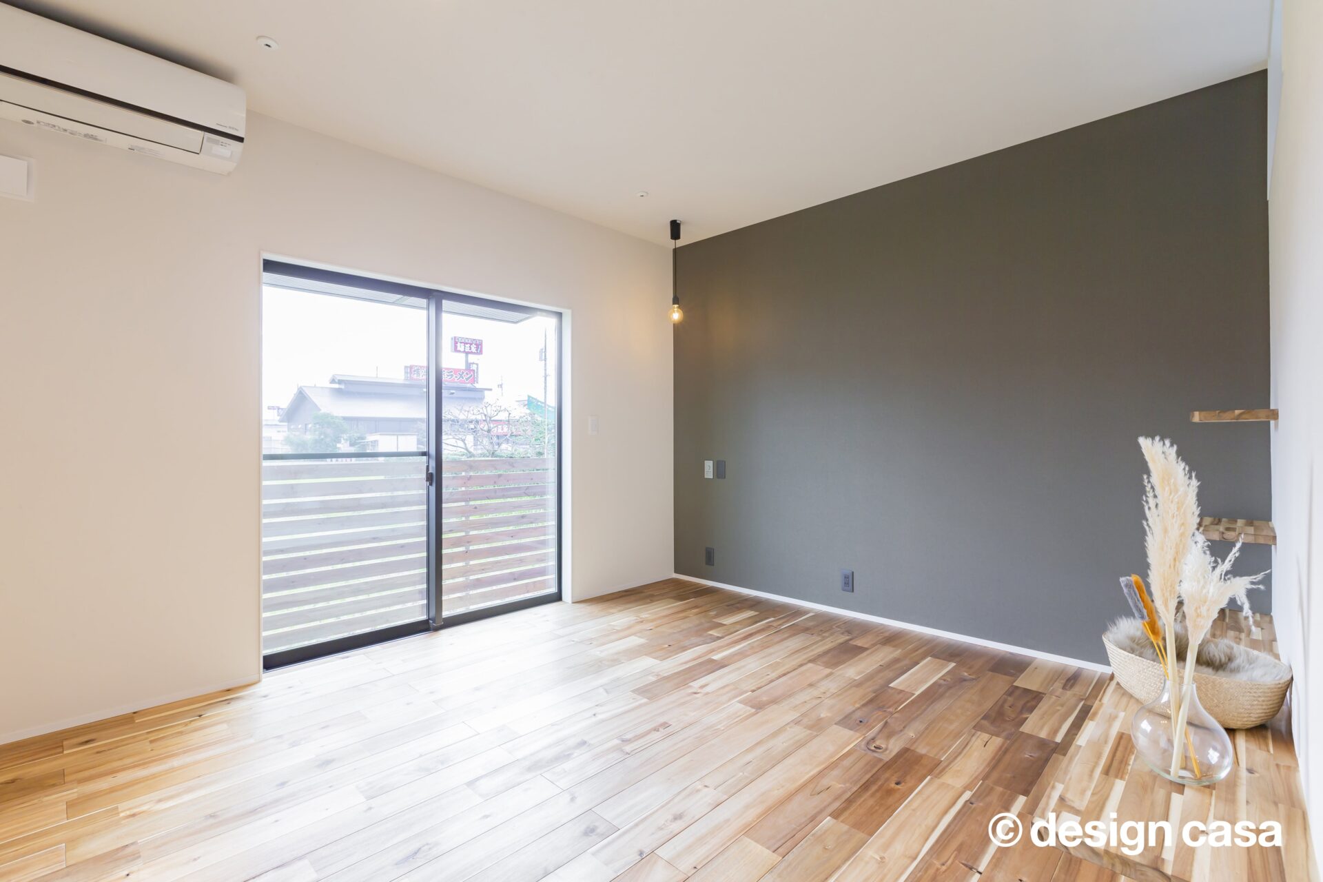 壁の一面だけに素材や色の変化を加えることで、空間に奥行きや表情が生まれます。