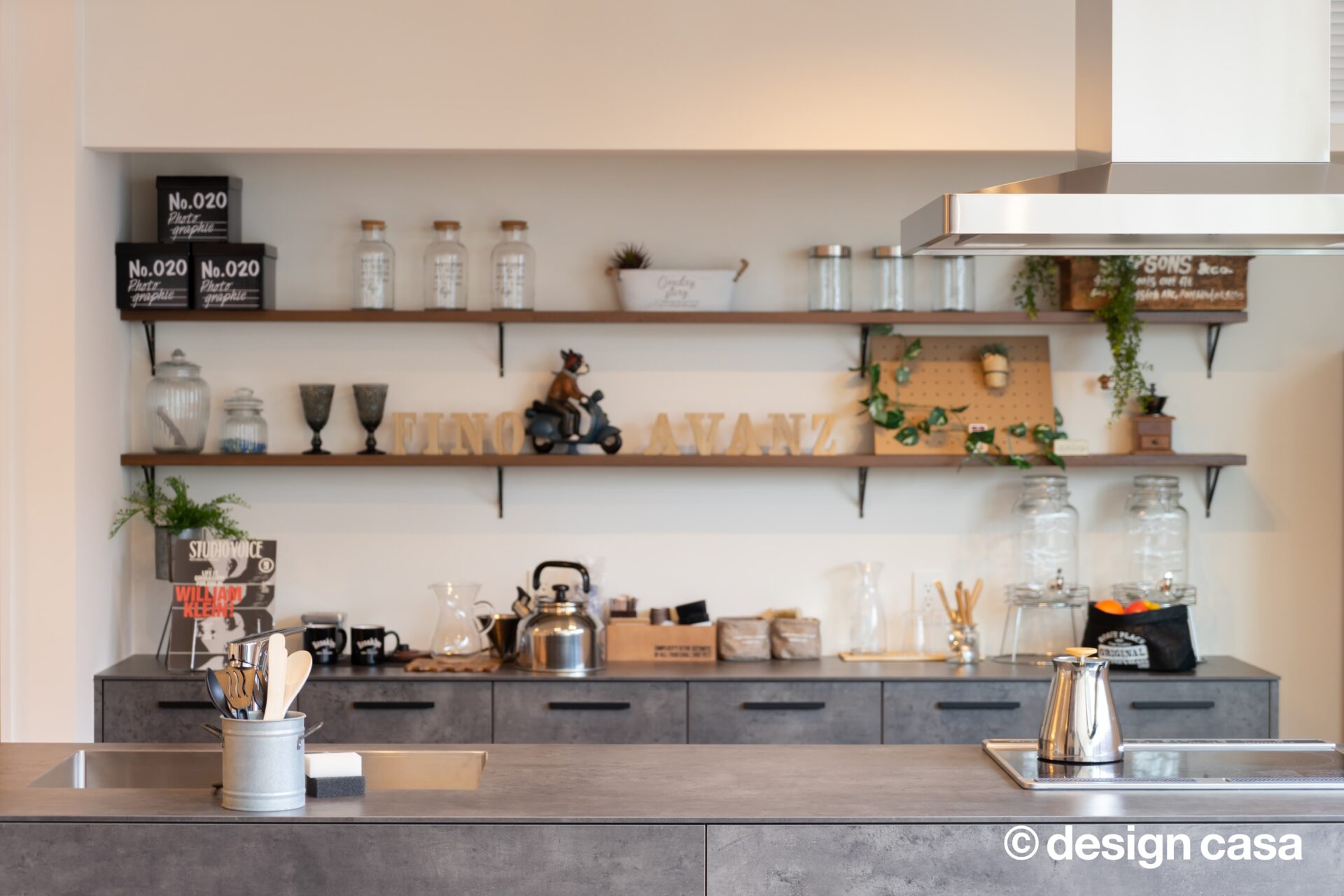 魅せる収納で、キッチンをおしゃれに演出できます。ただし、整理整頓が求められます。