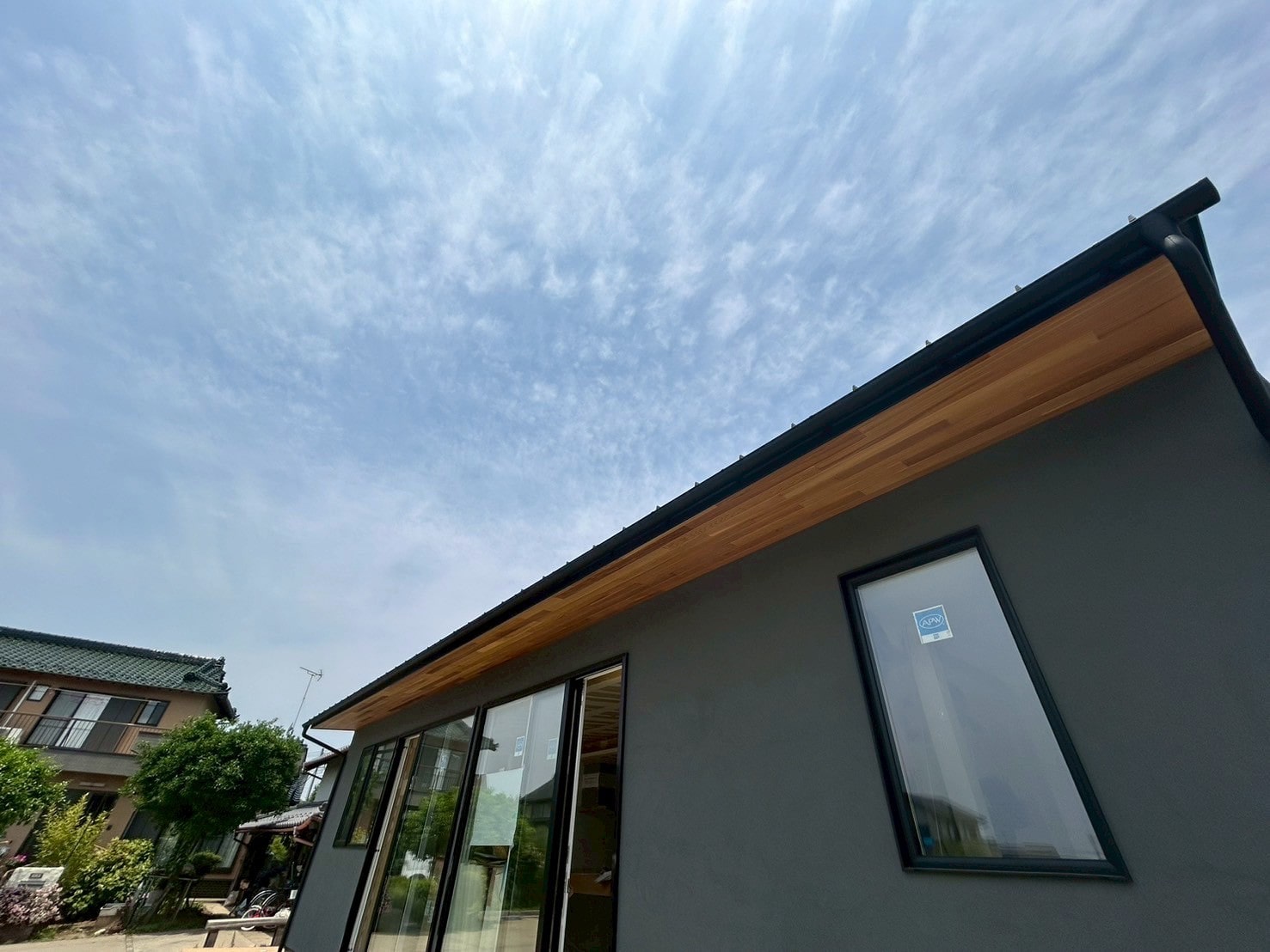 ナチュラルな温もりを演出してくれるのが、軒天に使ったレッドシダー材。
