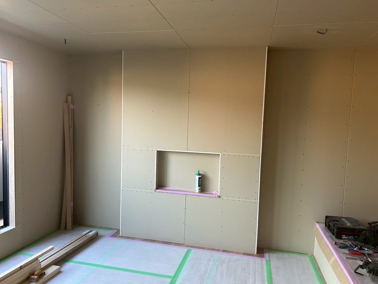 まだ、石膏ボードの状態ではありますが、空間が見えてくることで完成への期待が高まります。