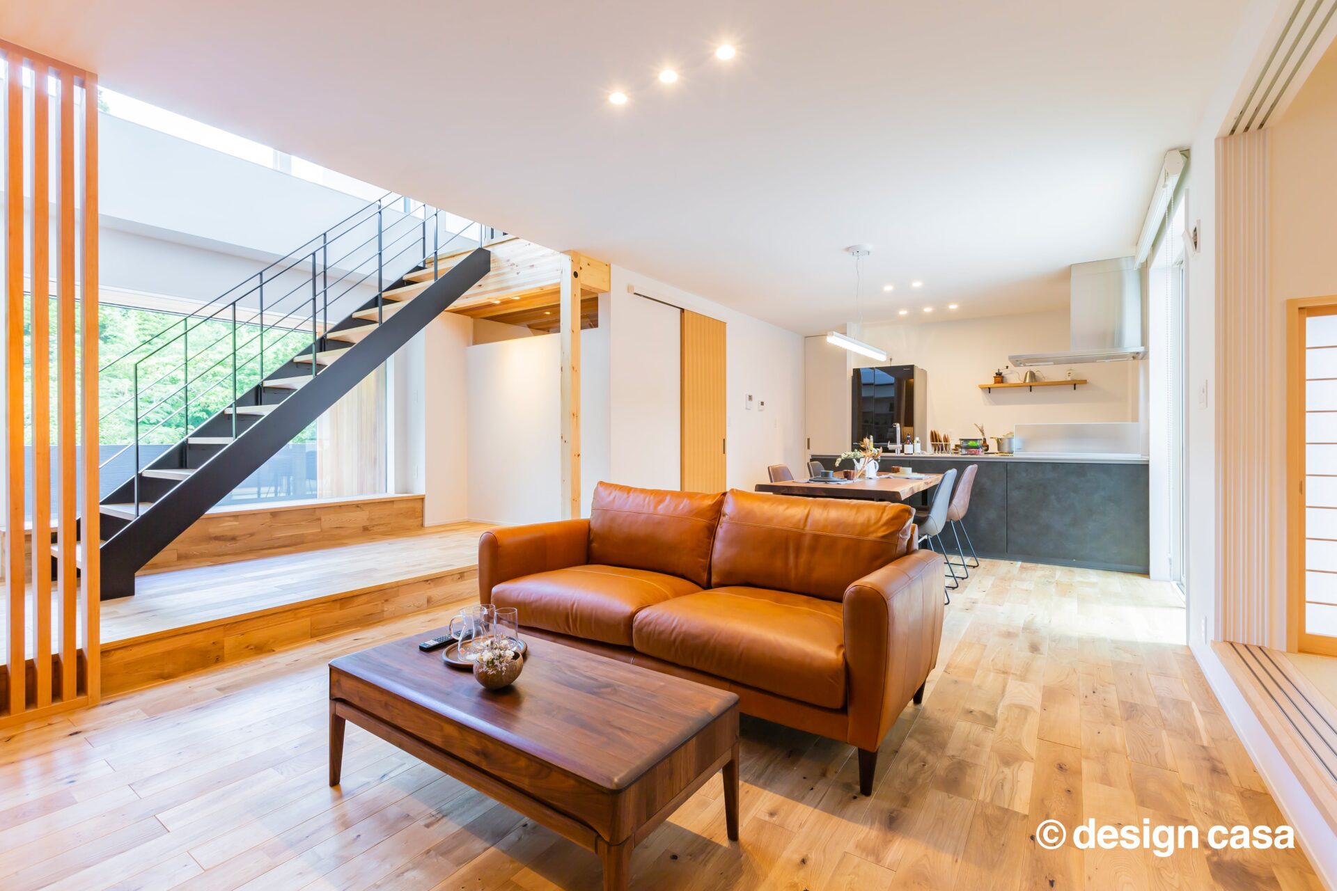 家族全員が自然と顔を合わせる間取りで、食事や団らんの時間を共有