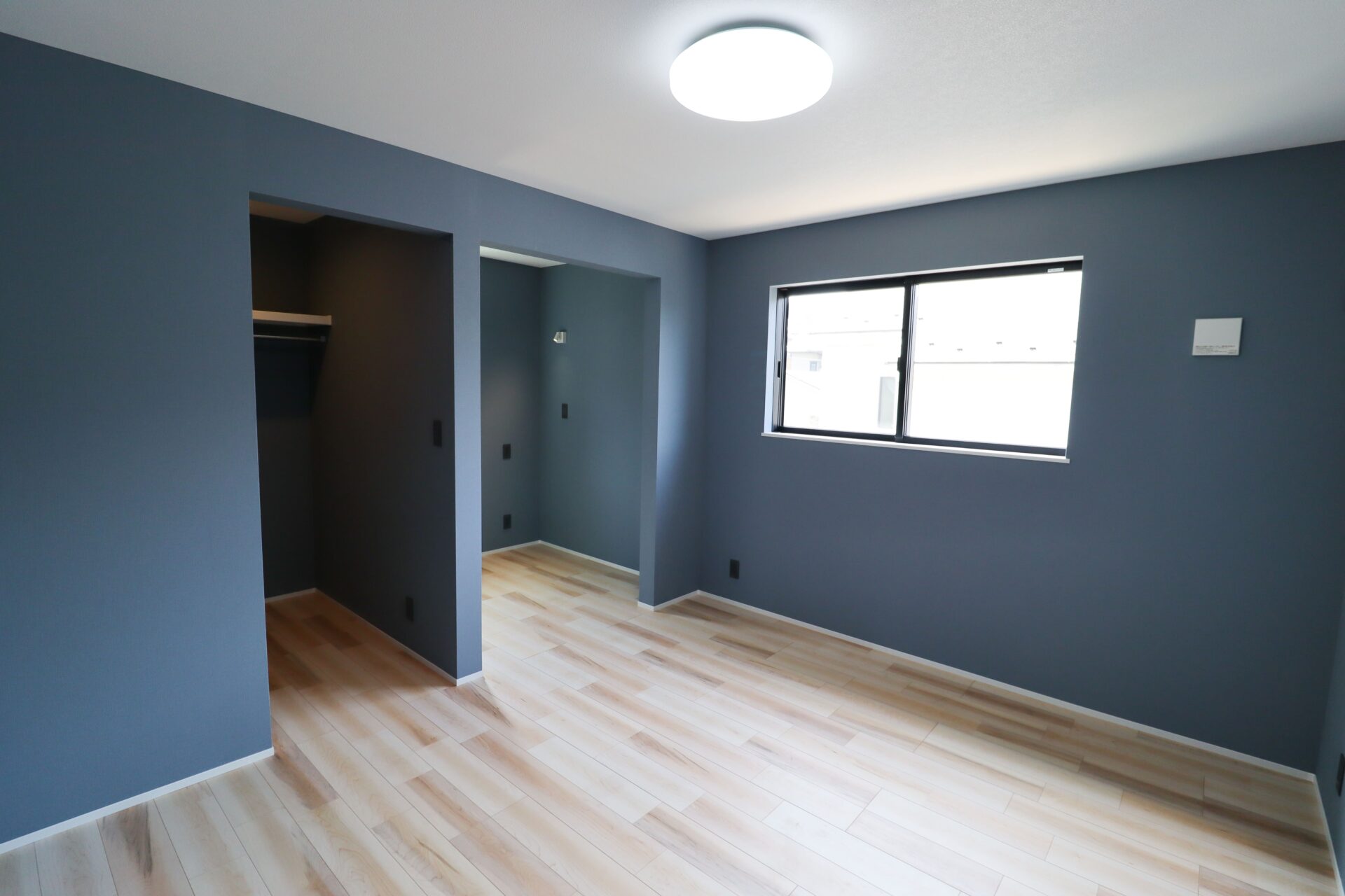 書斎とWIC付き、落ち着きのネイビーが映える主寝室