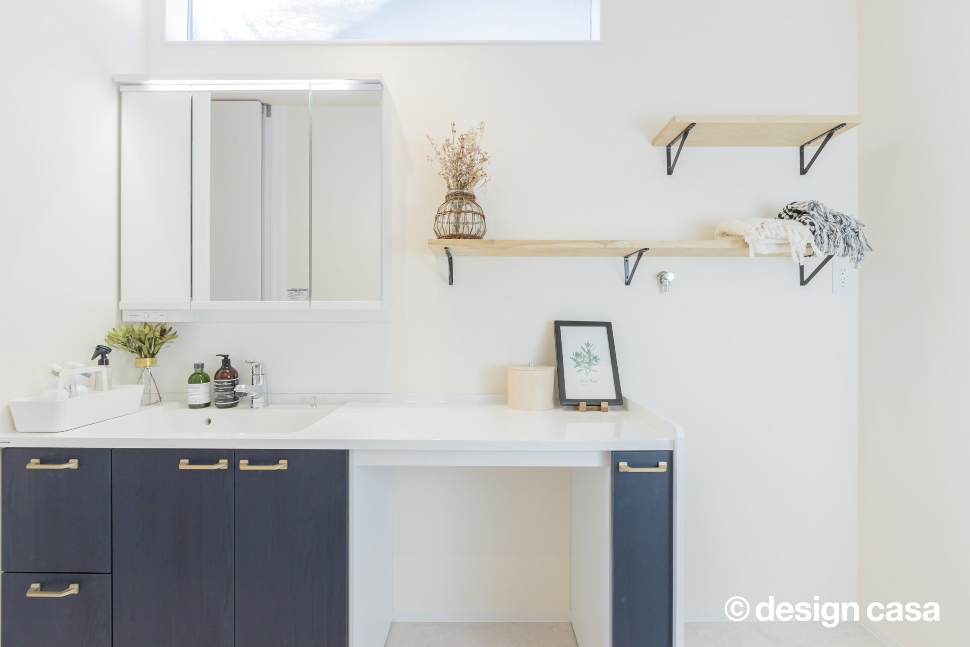 洗面台は三面鏡で隠す収納、