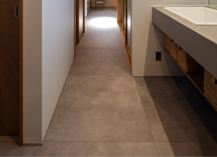 スムースな質感のフロアタイルは、