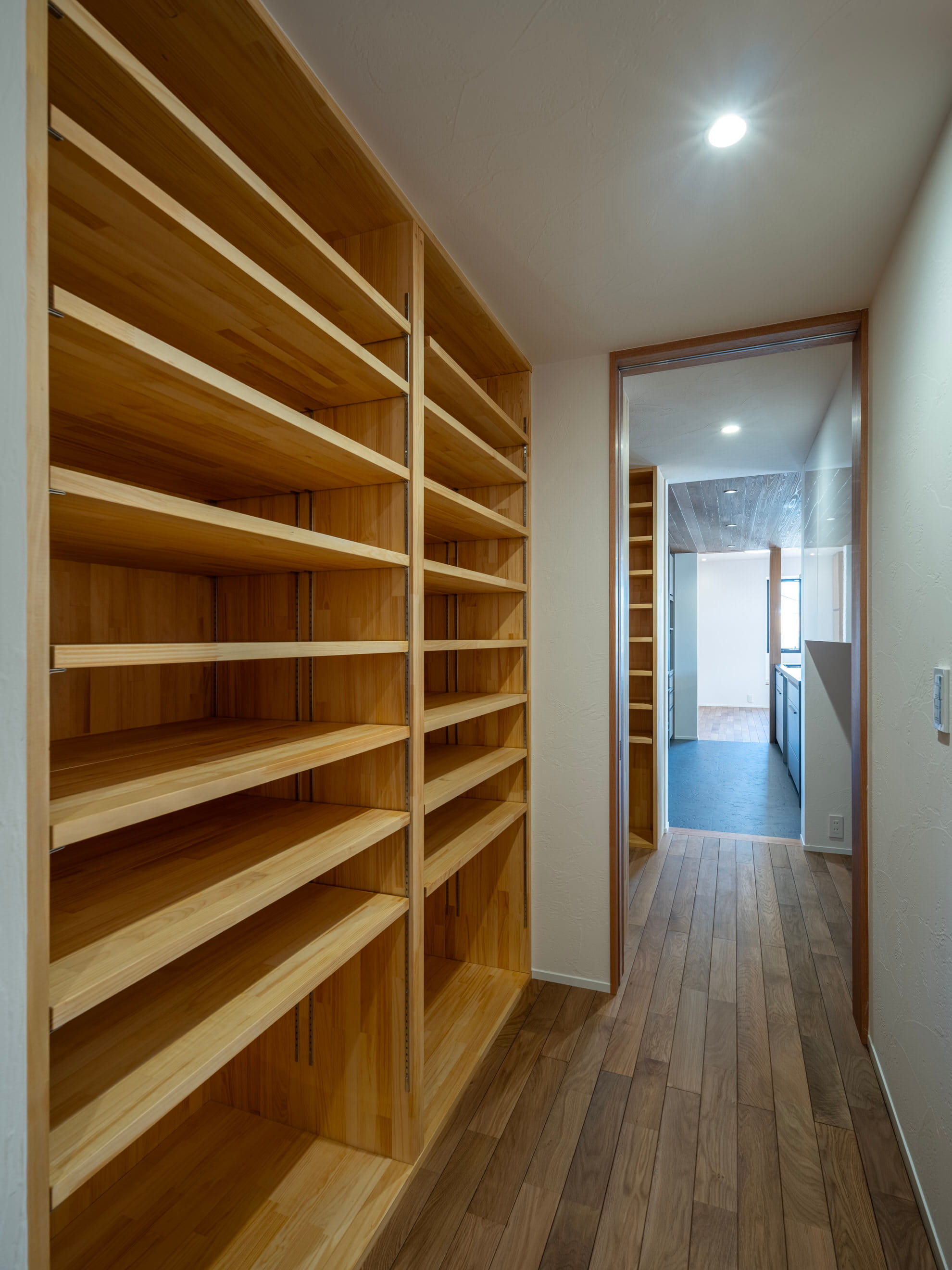 可動棚を備えた大容量の収納力ですっきりと整う上質なパントリー