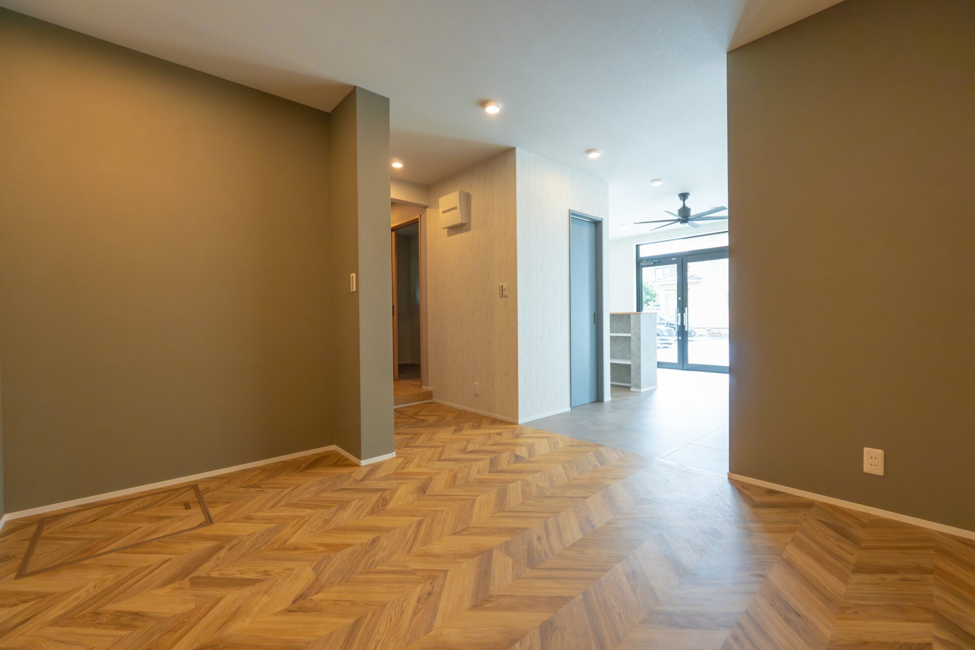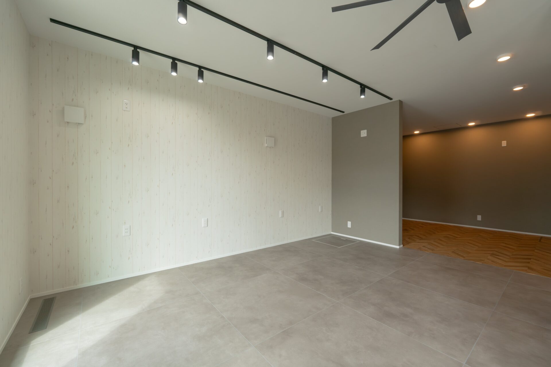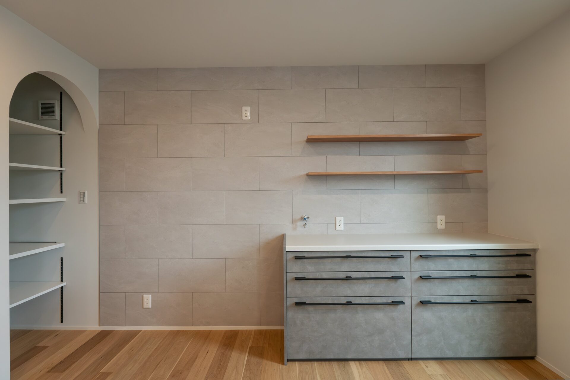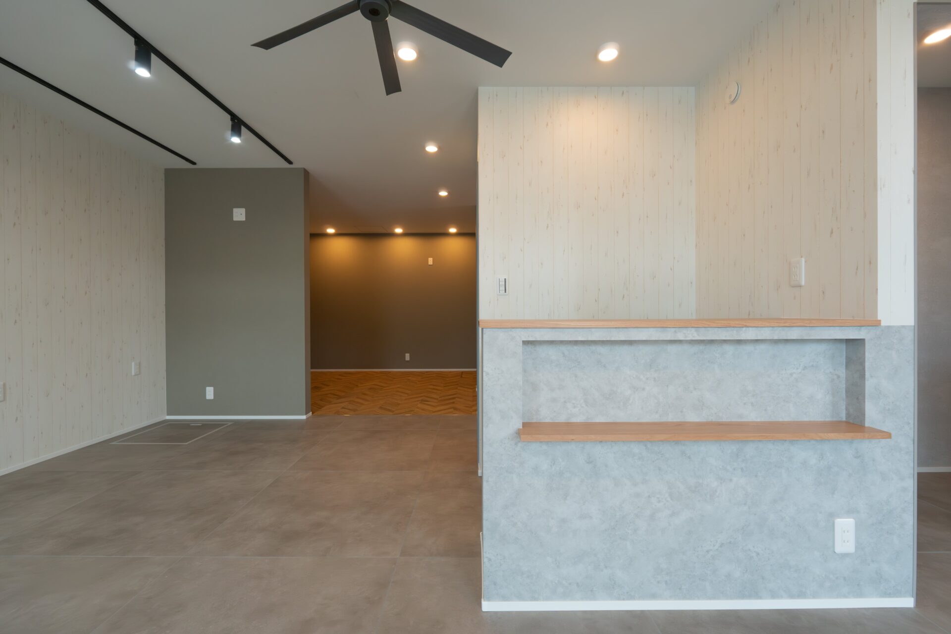 カットスペースはホワイトウッド柄でナチュラル&モダン