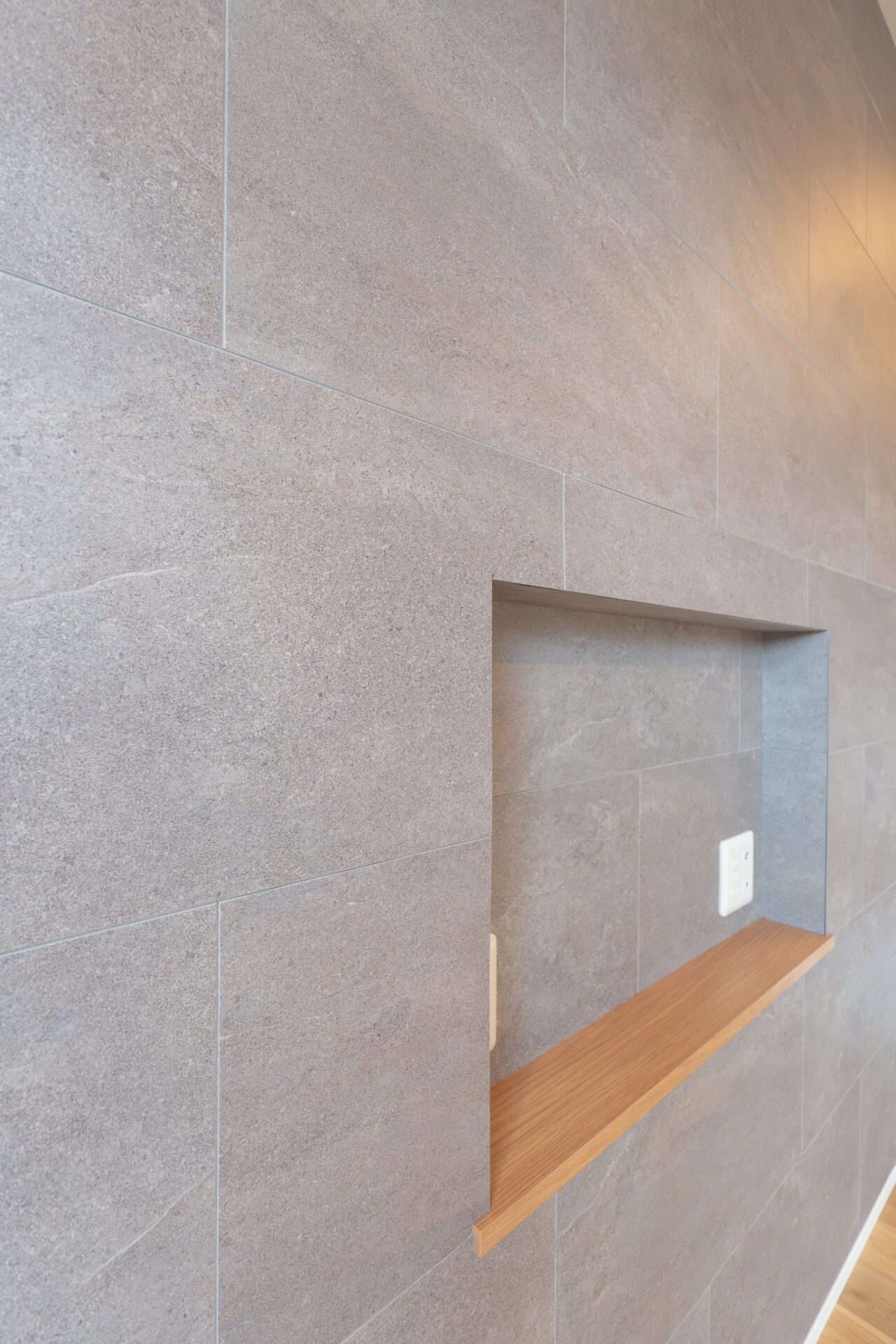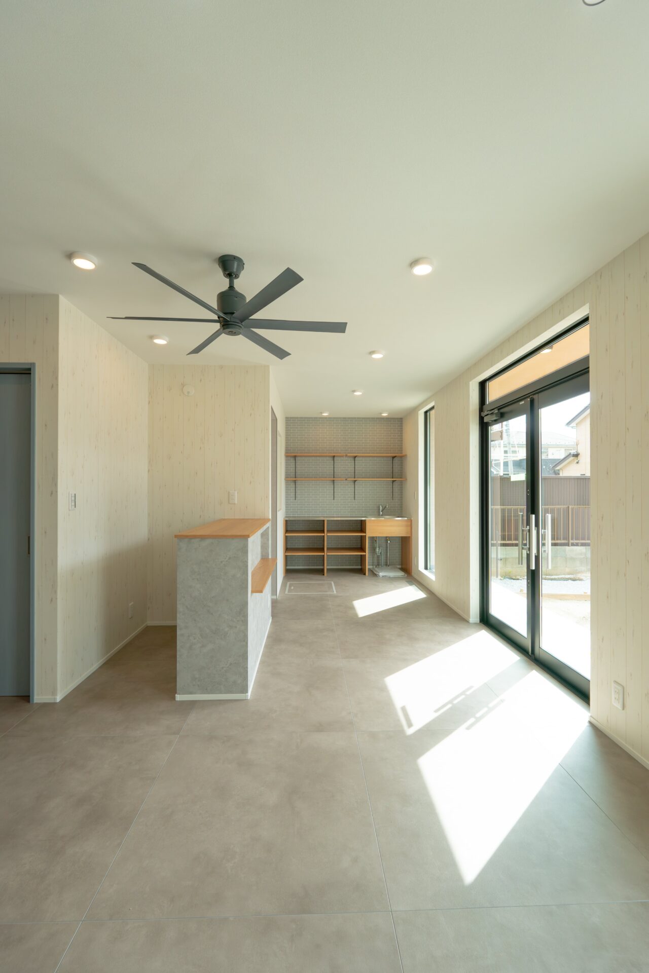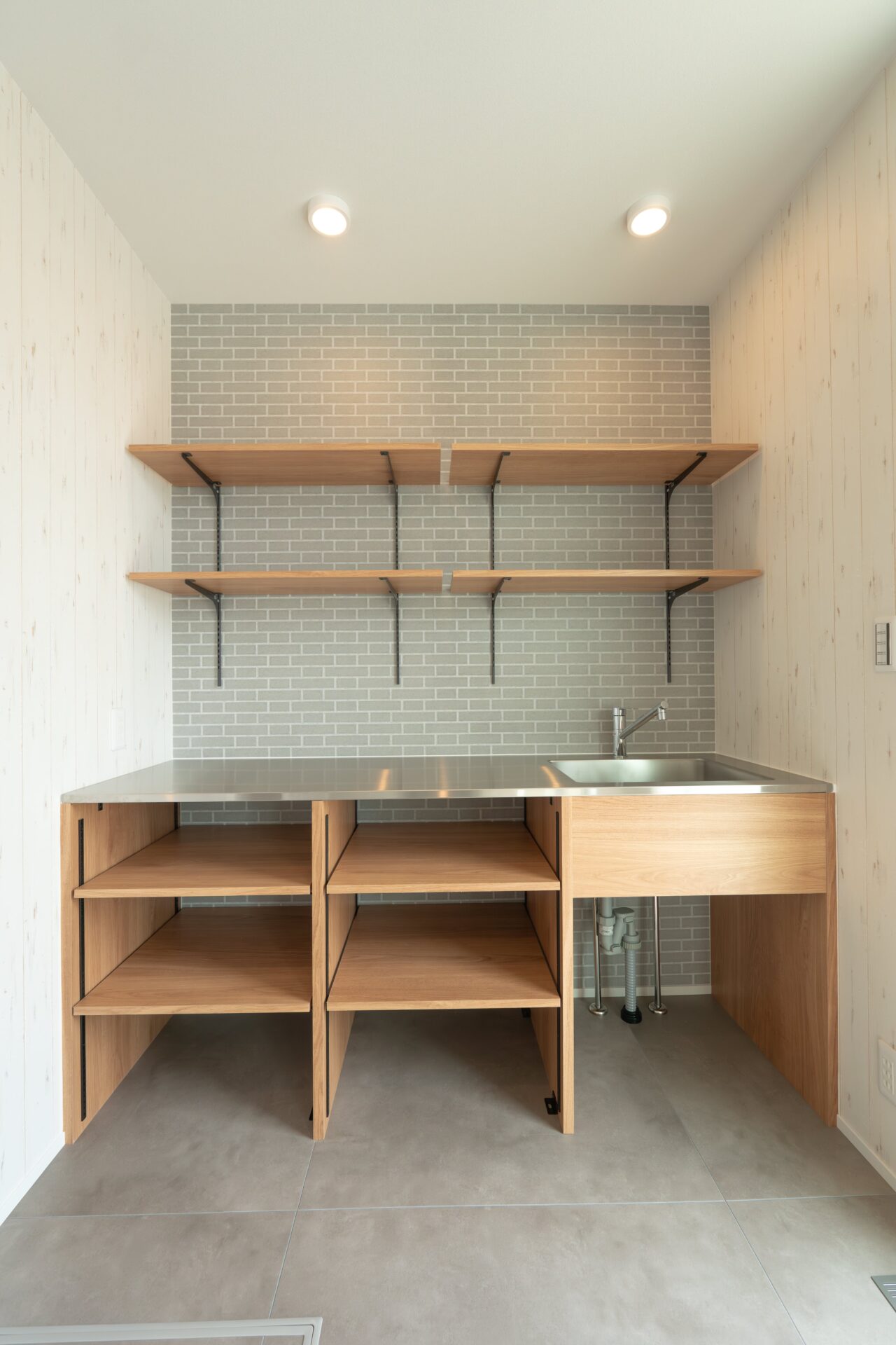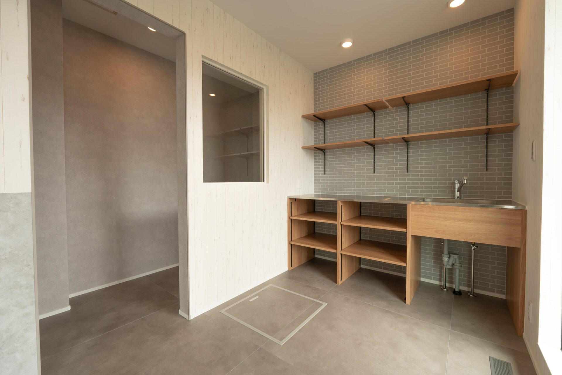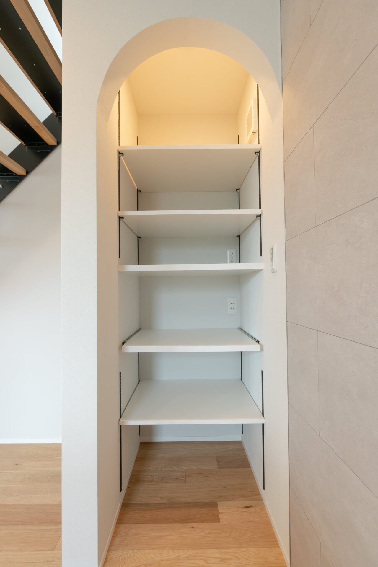 カットスペースはホワイトウッド柄でナチュラル&モダン