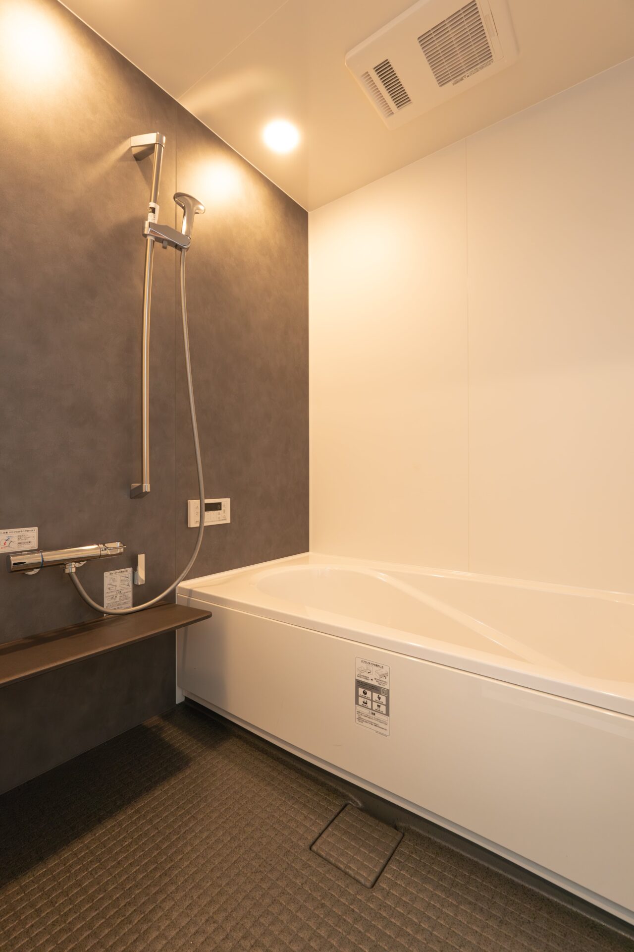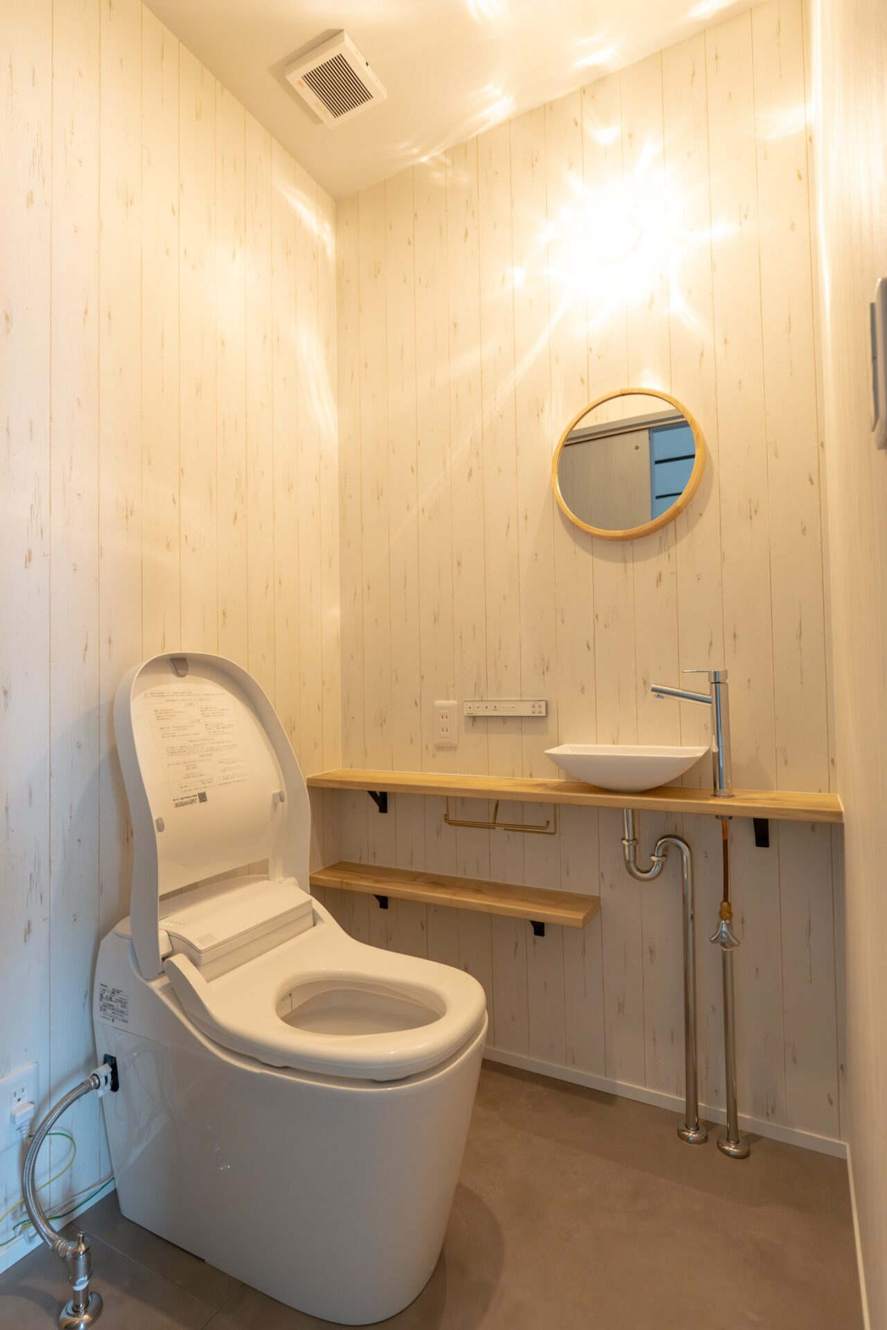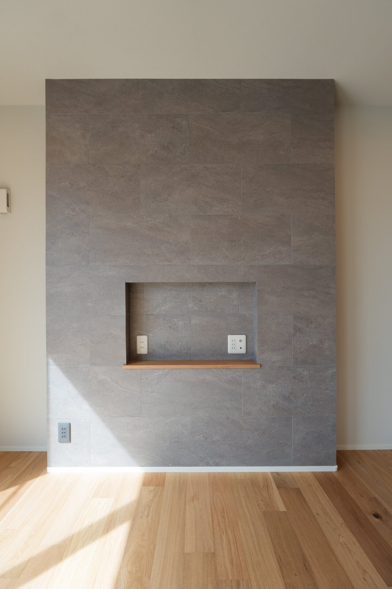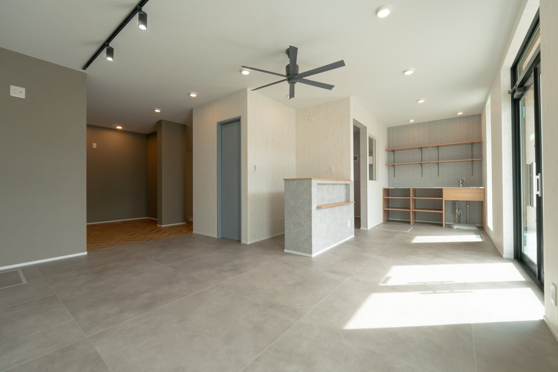 カットスペースはホワイトウッド柄でナチュラル&モダン
