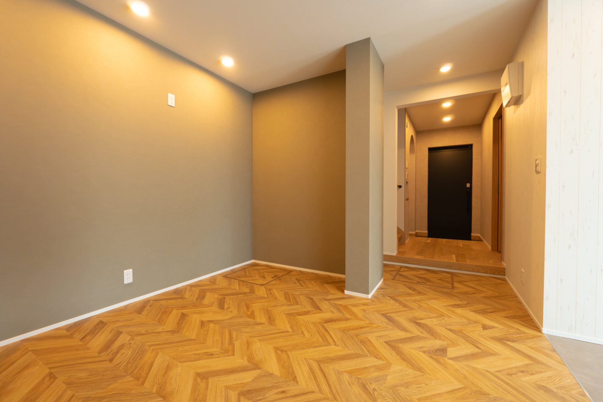 シャンプースペースはフレンチヘリンボーンのフロアタイル