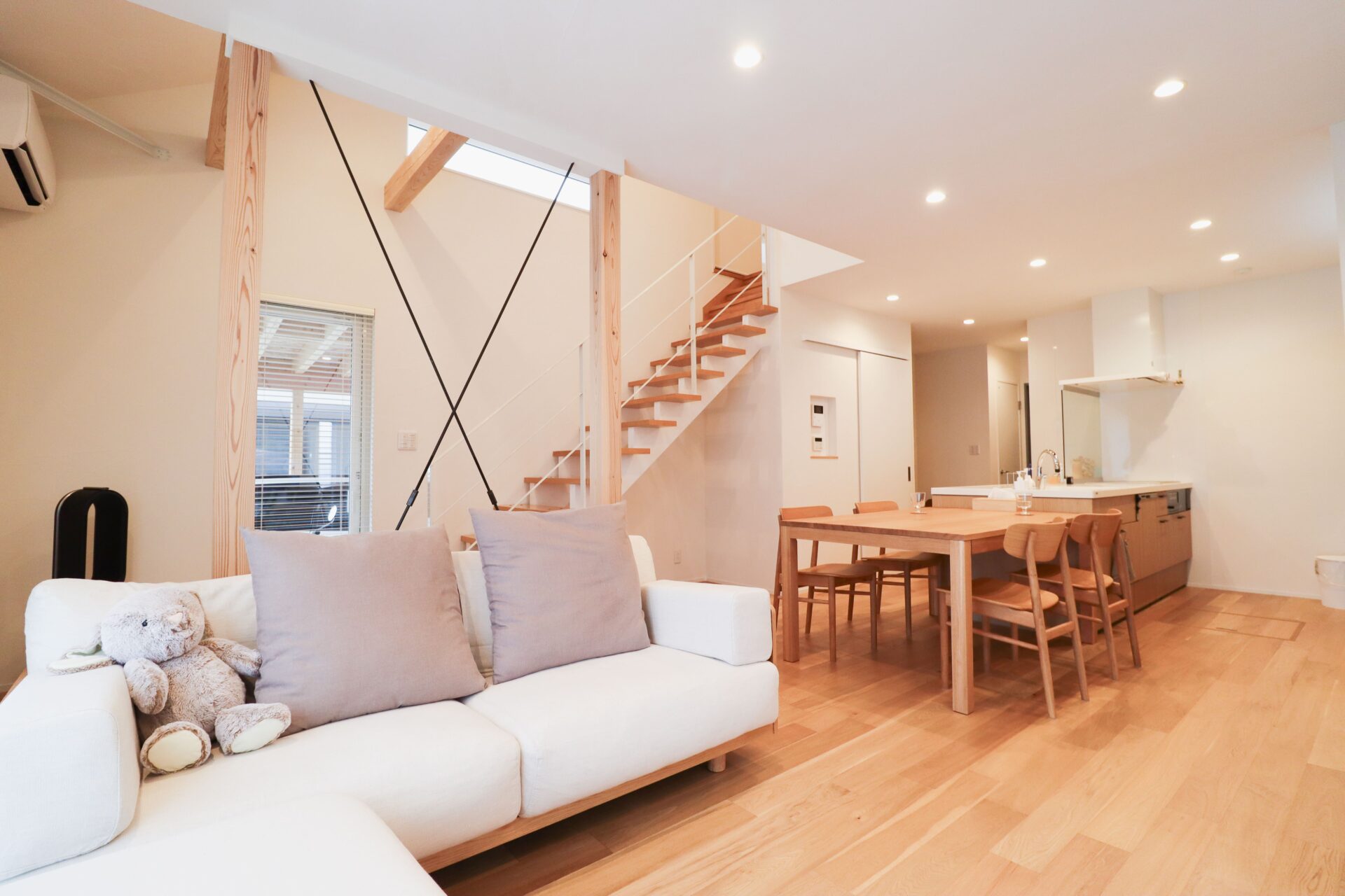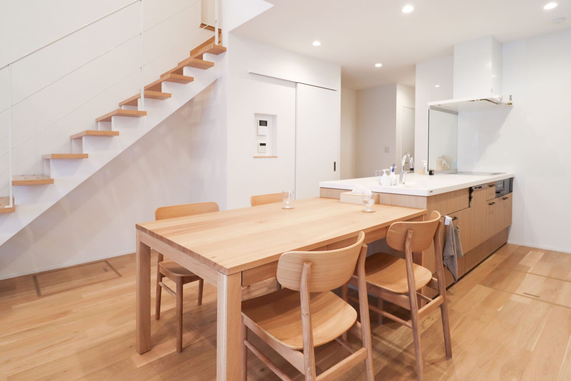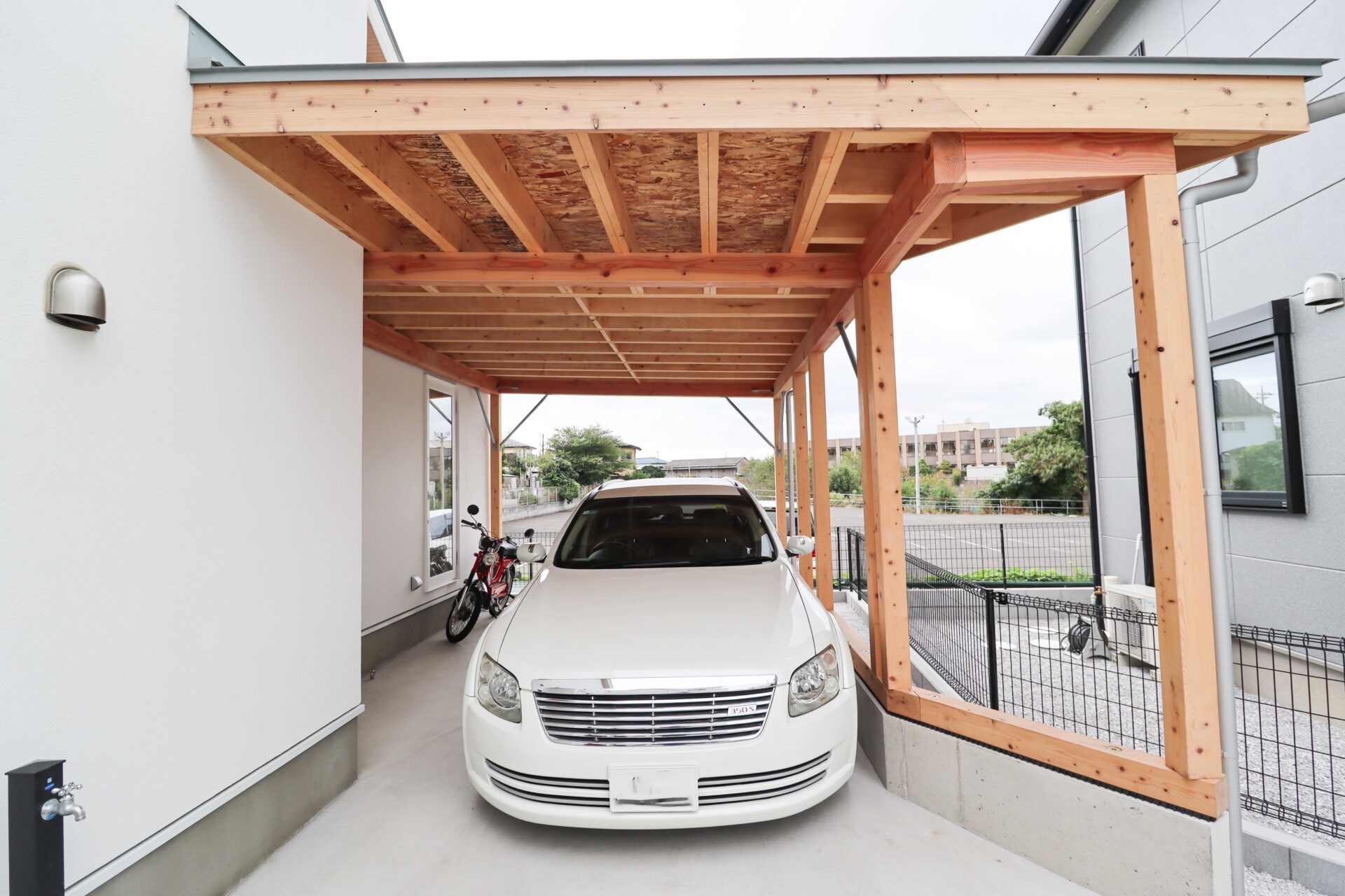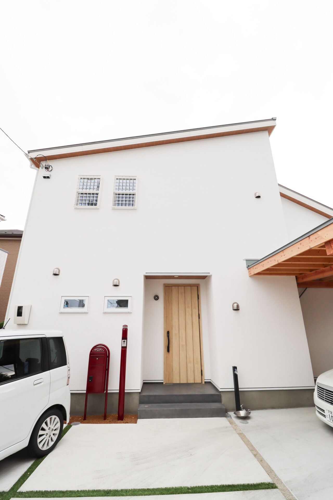 さいたま市 シンプル&ナチュラル|明るく軽やかな白壁の住まい 敷地面積45坪/延床面積27坪 STO塗り壁が映えるファサード、内に広がるナチュラルな大空間には梁も筋交いも 暮らしを彩るデザインに Gallery STO塗り壁のファサード 木製のカーポート 玄関直結のLDKは暮らしの動きがシンプルに ナチュラルテイストな広々LDK 筋交いもデザインに 木×ホワイトのスケルトン階段 階段には梁表しと勾配天井 フルフラットキッチン|LIXIL「シエラS」 横並び配置で料理から食事までの流れがシームレス デッドスペースを活かした、リモコンニッチ LIXIL「ルミシス22」 衣類の動きが完結するWICとランドリー一体設計 ファサード|裏側 木製カーポート|バイク お施主様|ファサード お施主様|LDK