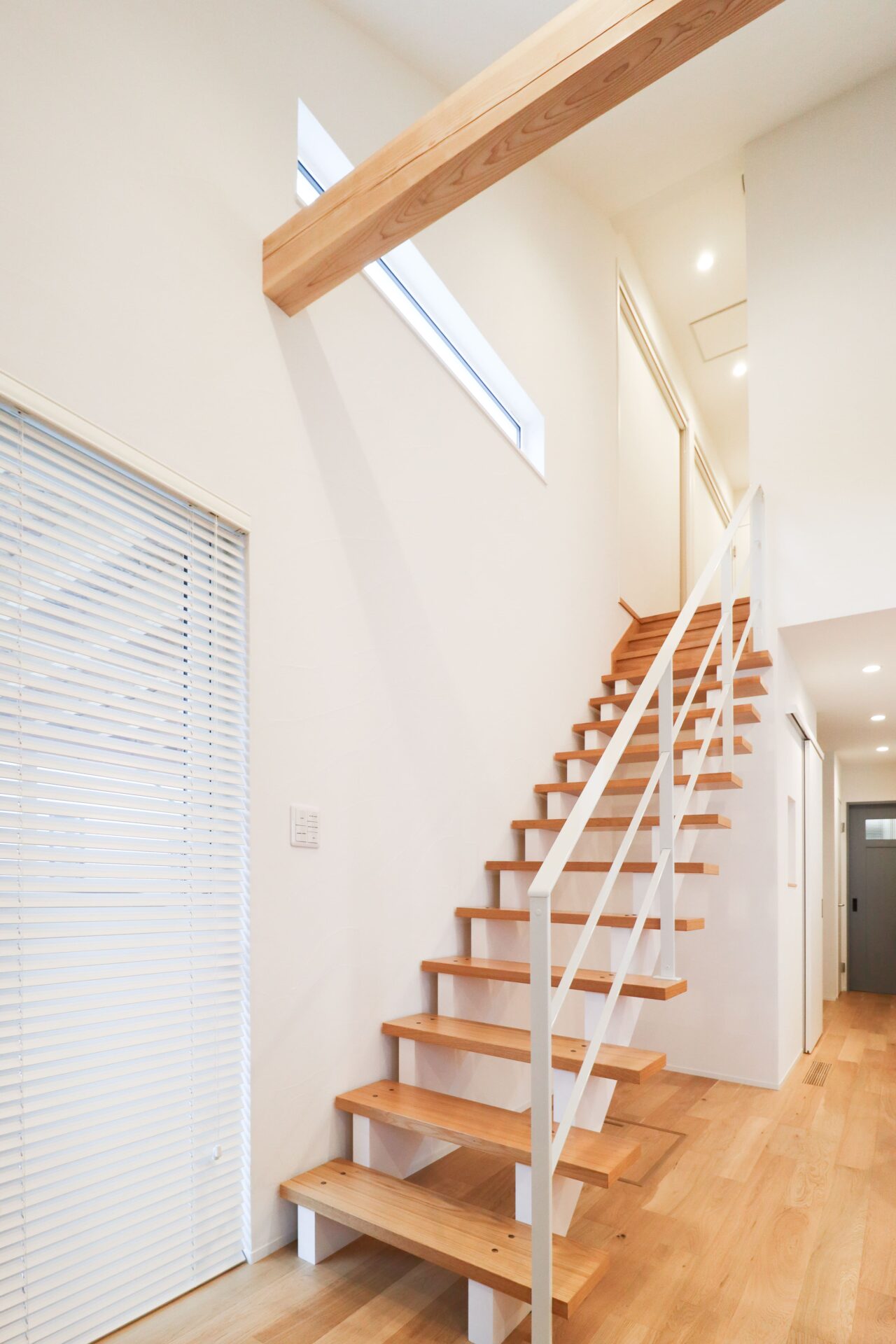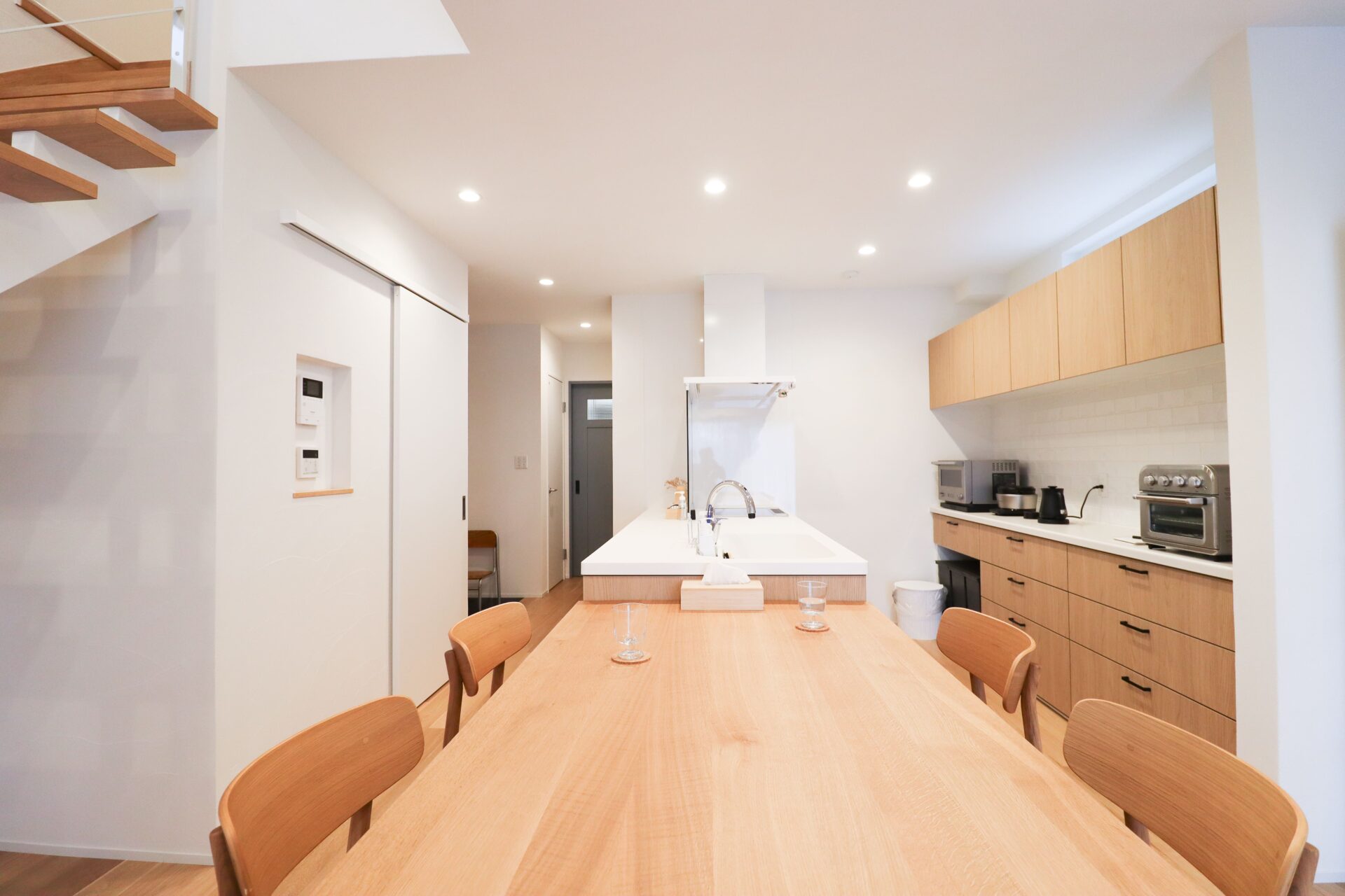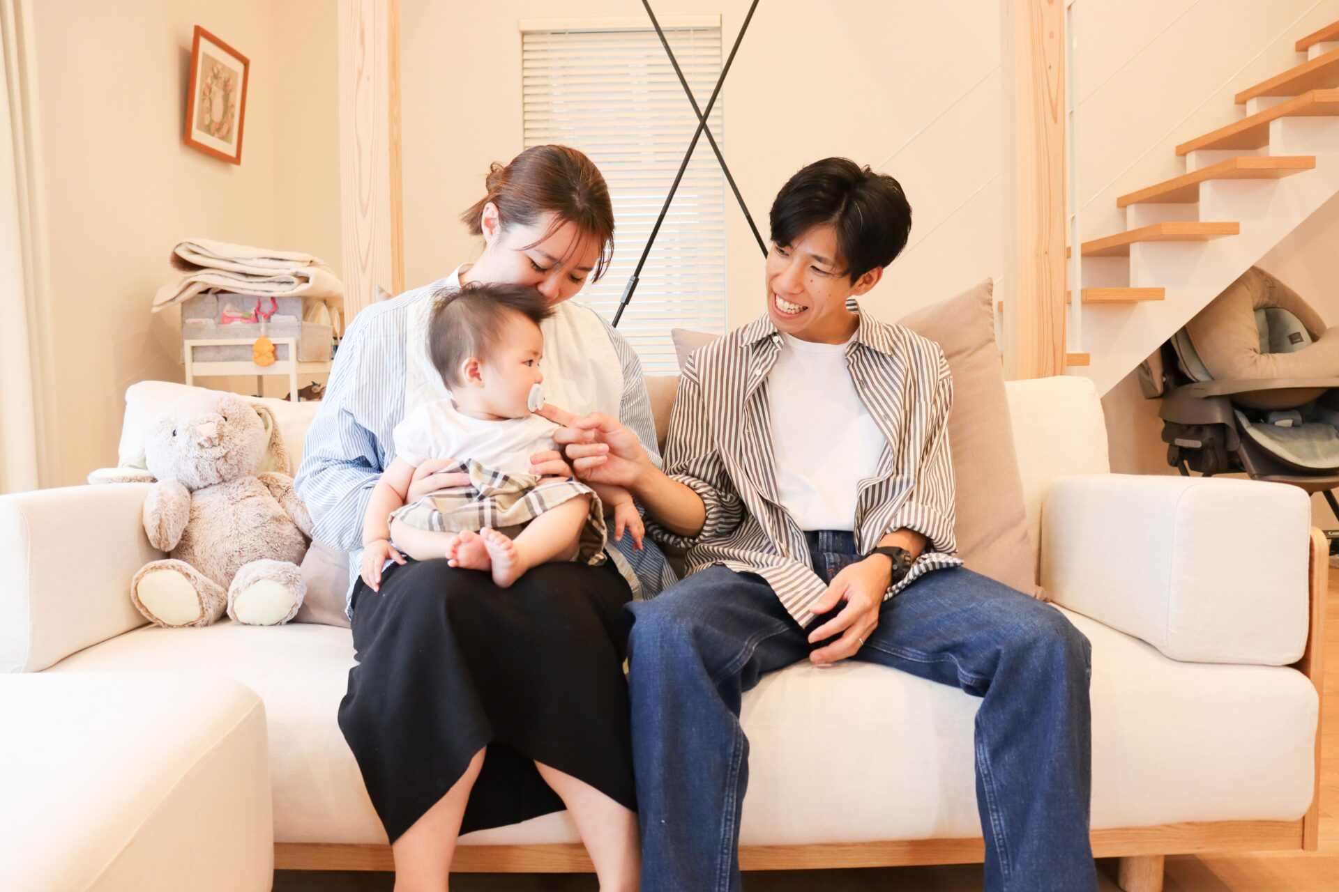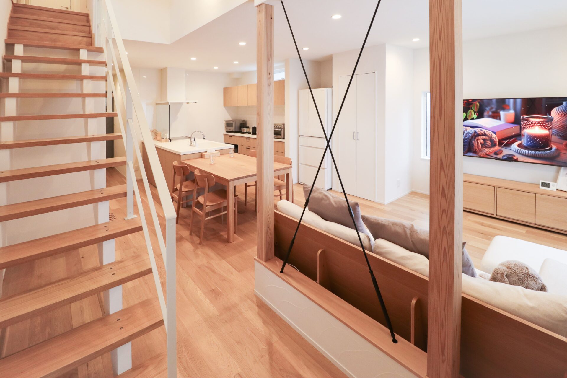 さいたま市 シンプル&ナチュラル|明るく軽やかな白壁の住まい 敷地面積45坪/延床面積27坪 STO塗り壁が映えるファサード、内に広がるナチュラルな大空間には梁も筋交いも 暮らしを彩るデザインに Gallery STO塗り壁のファサード 木製のカーポート 玄関直結のLDKは暮らしの動きがシンプルに ナチュラルテイストな広々LDK 筋交いもデザインに 木×ホワイトのスケルトン階段 階段には梁表しと勾配天井 フルフラットキッチン|LIXIL「シエラS」 横並び配置で料理から食事までの流れがシームレス デッドスペースを活かした、リモコンニッチ LIXIL「ルミシス22」 衣類の動きが完結するWICとランドリー一体設計 ファサード|裏側 木製カーポート|バイク お施主様|ファサード お施主様|LDK