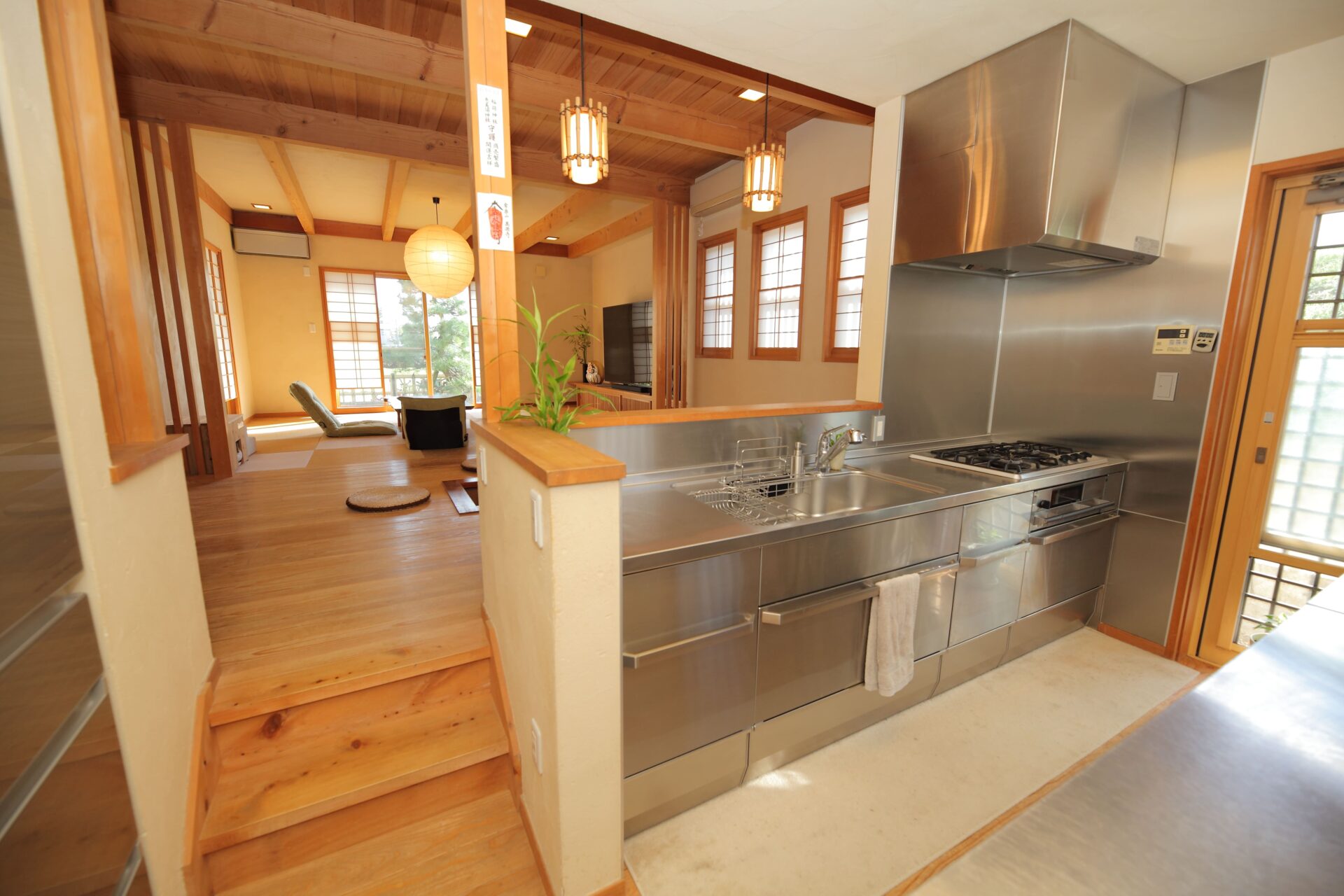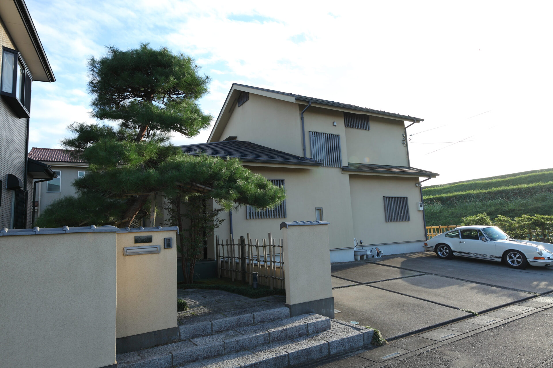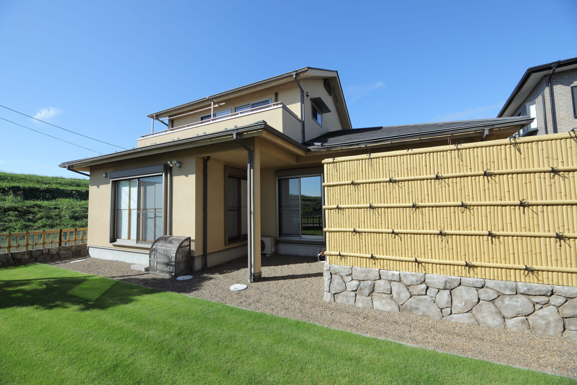 さいたま市 M様邸 色褪せることなく保つ美しさ|和モダン×無垢材 時とともに深みを増す無垢材の風合い。 和モダンの上質な意匠が、飽きのこない心地よい暮らしを紡ぐ住まいです。 Gallery 時代に左右されない塗り壁の外壁 芝生のやわらかな緑とモルタル造形の質感が調和する庭 竹に囲まれた外気浴スペース 和を感じさせる玄関アプローチ 漆喰の塗り壁と無垢材で統一された玄関ホール 和モダンに無垢材を合わせた広々リビング ステンレスキッチンと無垢材が調和する、和のペンダントライトが照らす上質なキッチン空間 和モダンに合わせたペンダントライト 二人並んで使える造作洗面 旅館を感じさせる檜風呂 高級感溢れるトイレ 和の雰囲気を残し、リゾートに仕上げた主寝室 趣味の部屋