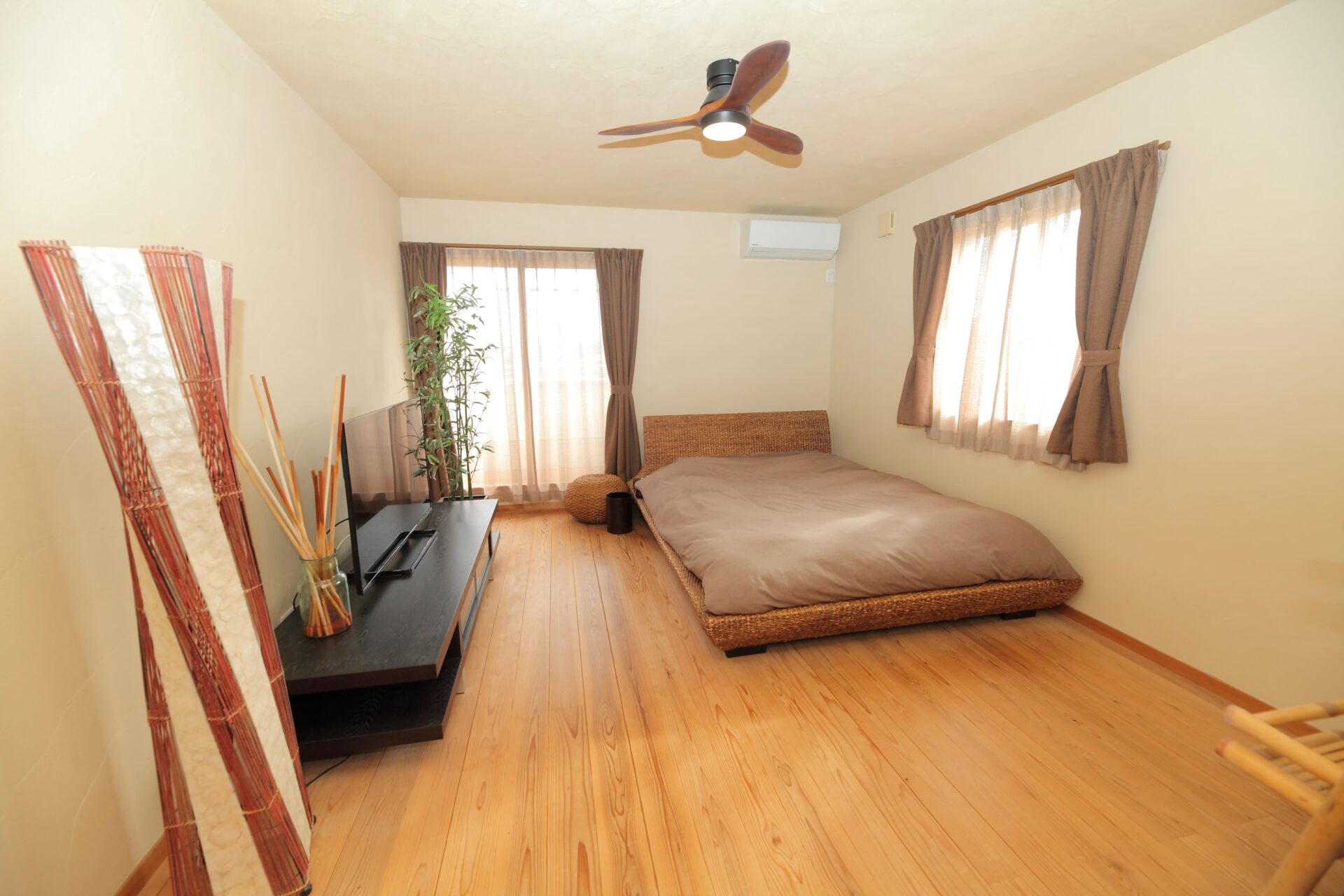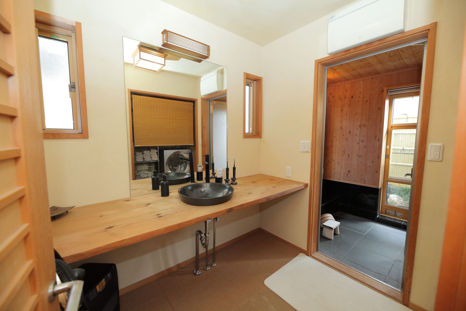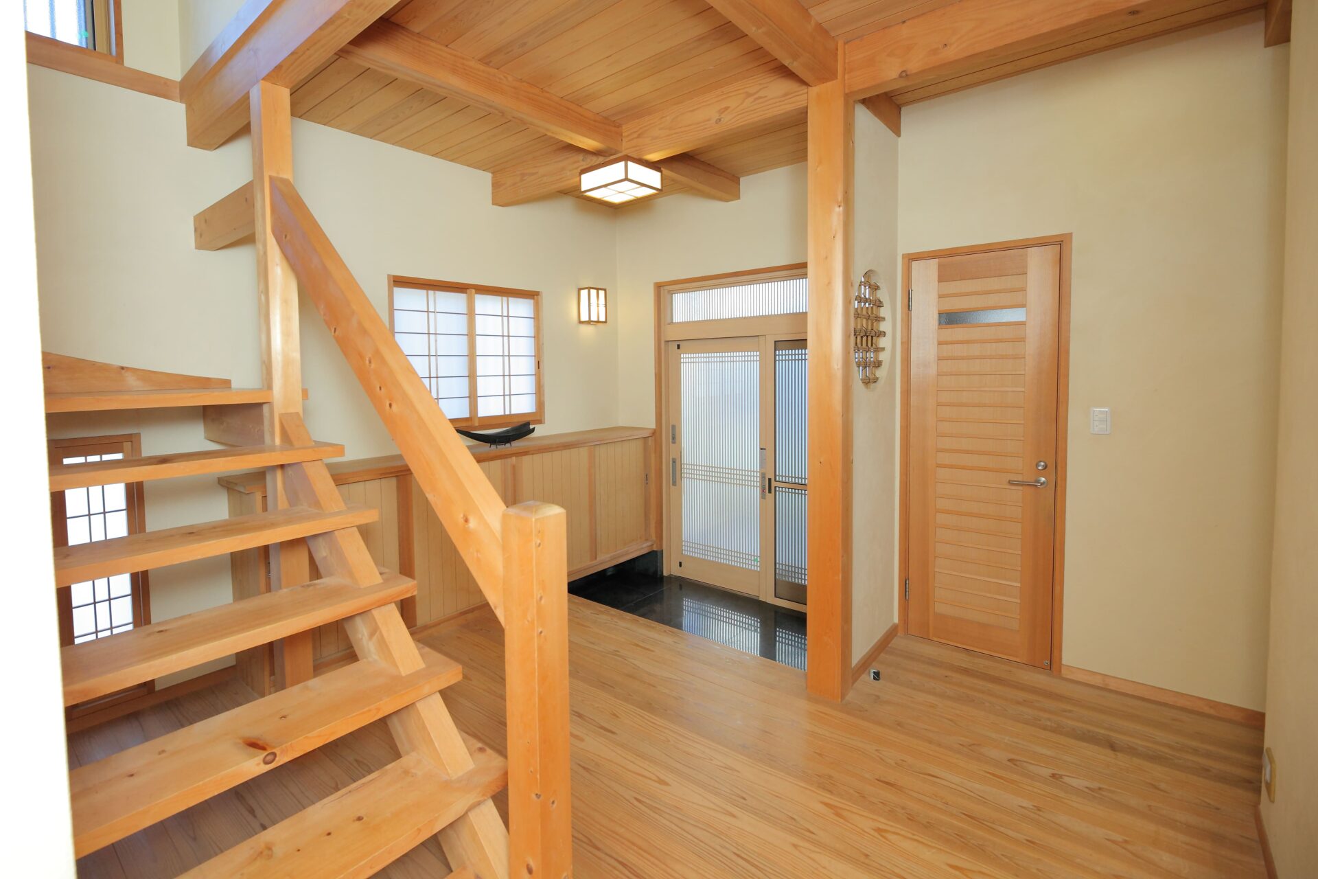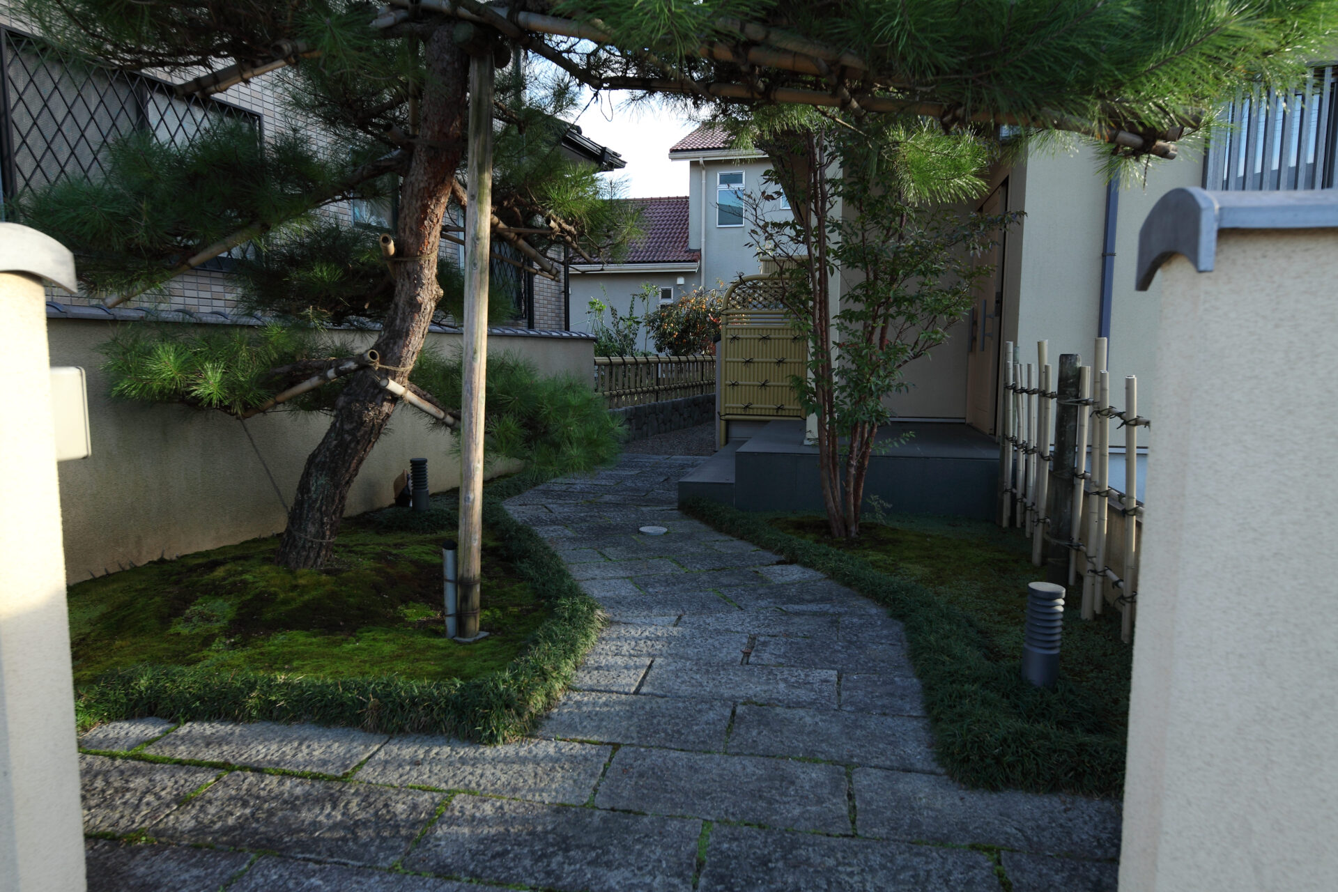 さいたま市 M様邸 色褪せることなく保つ美しさ|和モダン×無垢材 時とともに深みを増す無垢材の風合い。 和モダンの上質な意匠が、飽きのこない心地よい暮らしを紡ぐ住まいです。 Gallery 時代に左右されない塗り壁の外壁 芝生のやわらかな緑とモルタル造形の質感が調和する庭 竹に囲まれた外気浴スペース 和を感じさせる玄関アプローチ 漆喰の塗り壁と無垢材で統一された玄関ホール 和モダンに無垢材を合わせた広々リビング ステンレスキッチンと無垢材が調和する、和のペンダントライトが照らす上質なキッチン空間 和モダンに合わせたペンダントライト 二人並んで使える造作洗面 旅館を感じさせる檜風呂 高級感溢れるトイレ 和の雰囲気を残し、リゾートに仕上げた主寝室 趣味の部屋
