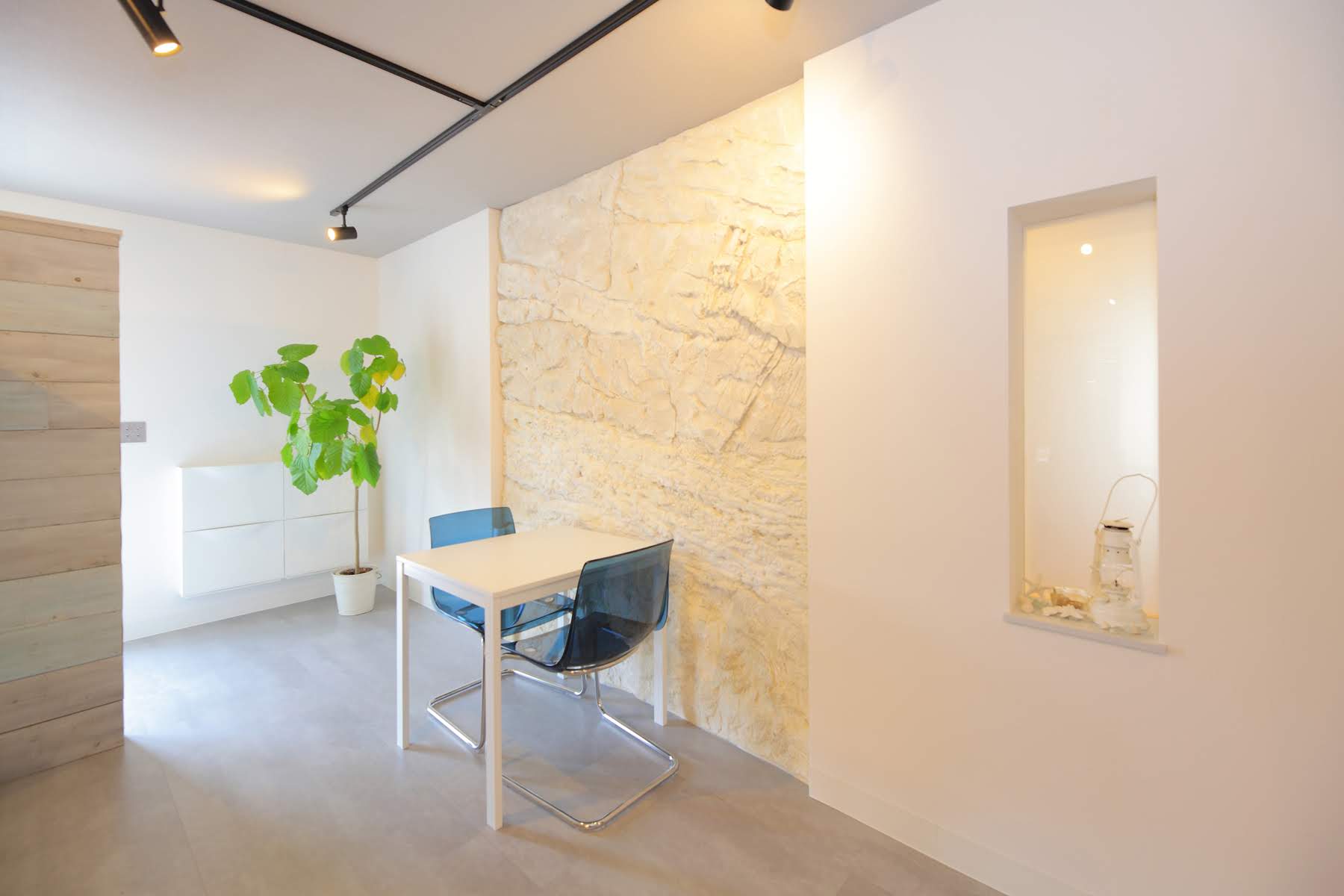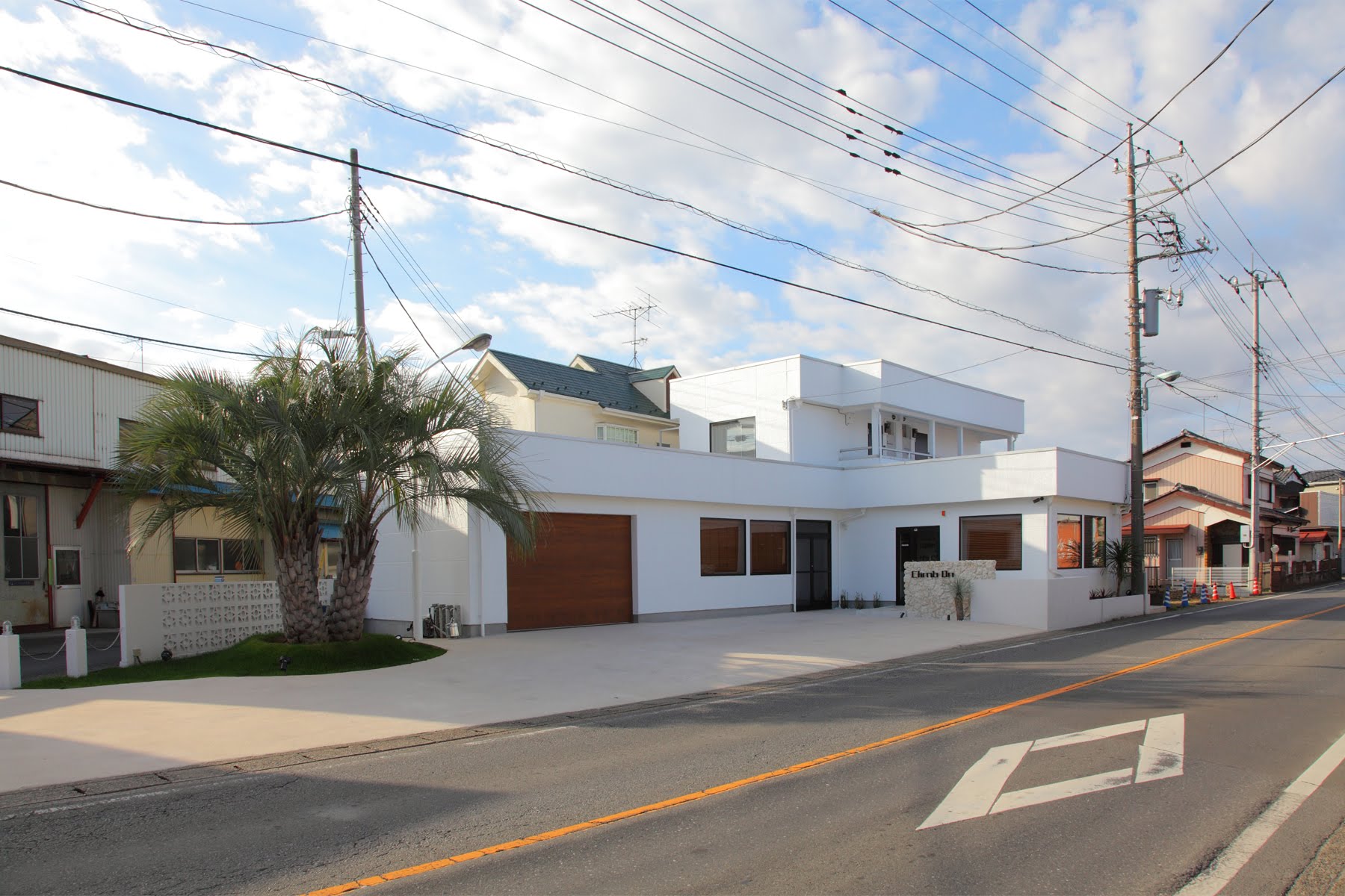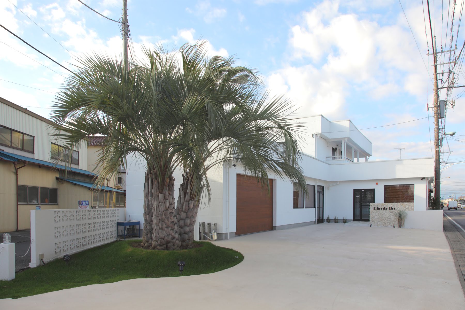 さいたま市 C様邸 THE リゾート|ヤシの木のある生活 真っ白な外壁にレッドシダーの電動シャッター、ヤシの木が映えるリゾートスタイル モルタル造形とオークの床で、内装もこだわりを Gallery 南国の風を感じる、リゾートスタイルな外観 シンボルツリーのヤシの木 真っ白な外壁×ヤシの木のコントラスト、非日常の景色 オークの床材は自然な色合い、ナチュラルテイストLDK ホワイトの中に映える、モルタル造形のアクセント ホワイト×グレーが作る、洗練されたワークスペース シンプルな中に上品さを纏うトイレ空間