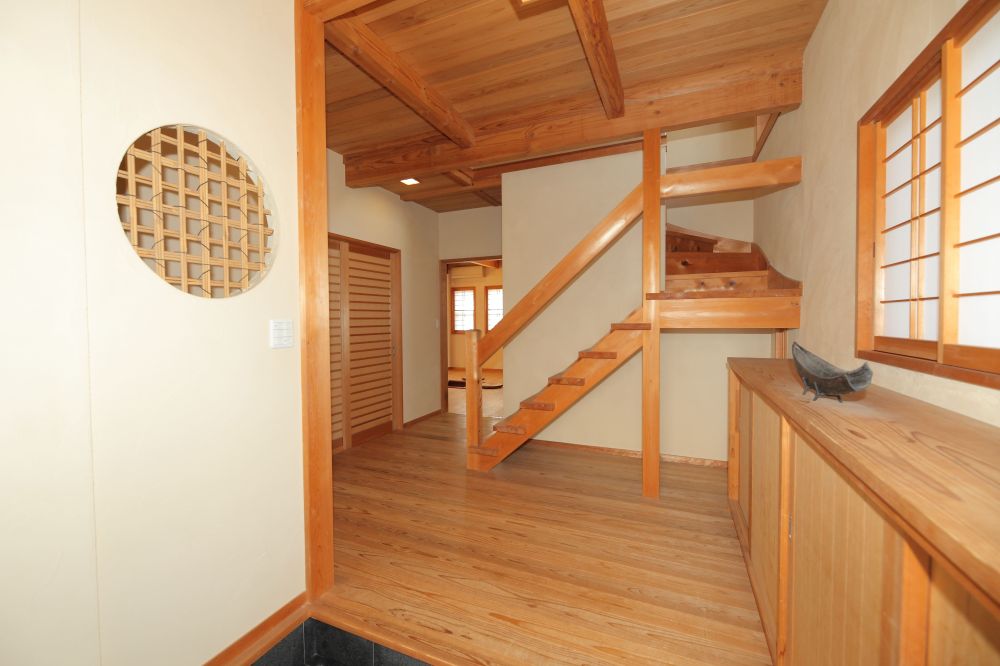 大工さんに作ってもらった既製品とは一味も二味も違う階段や造作の下駄箱など、