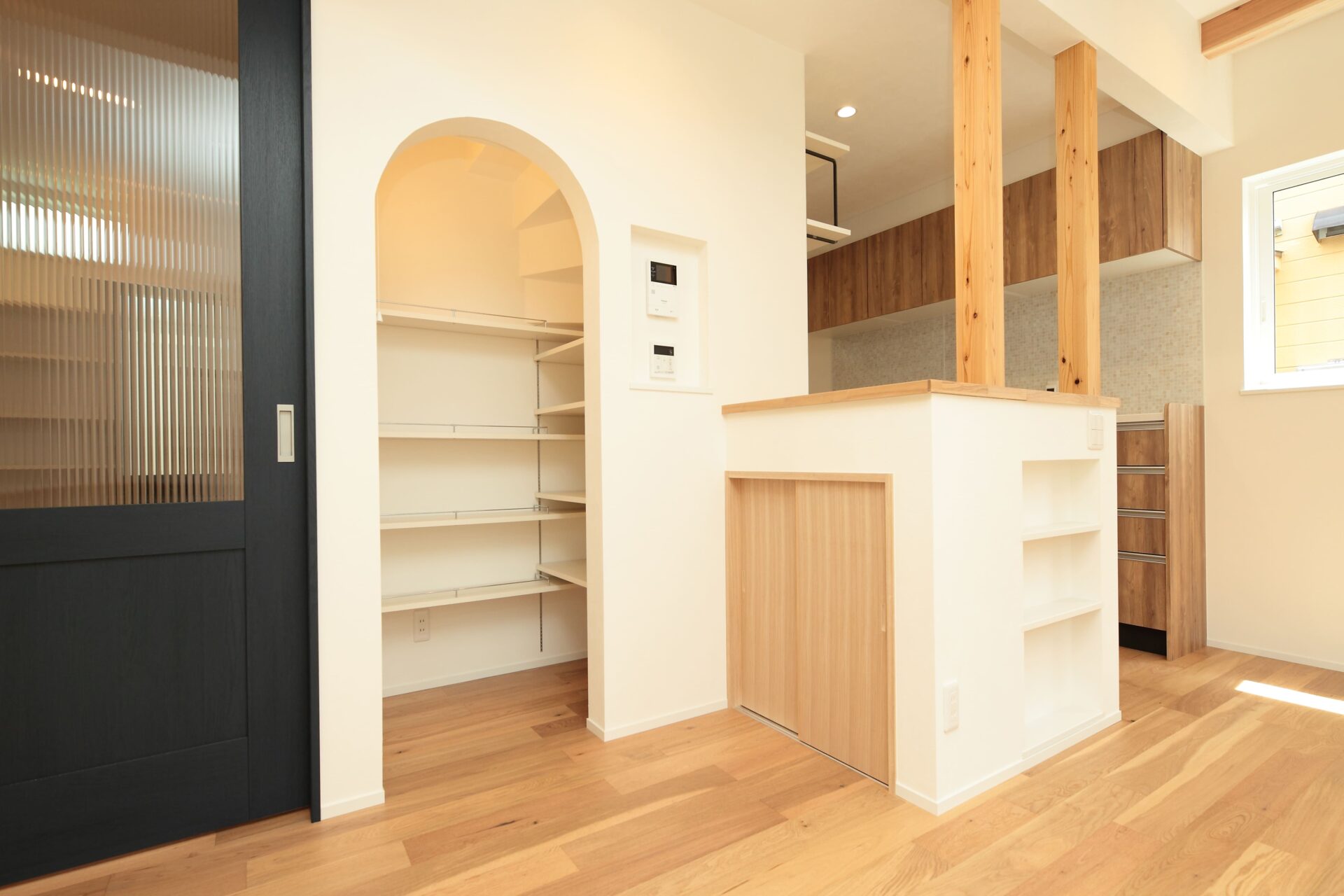 導線をよく考えた土間収納からのパントリー